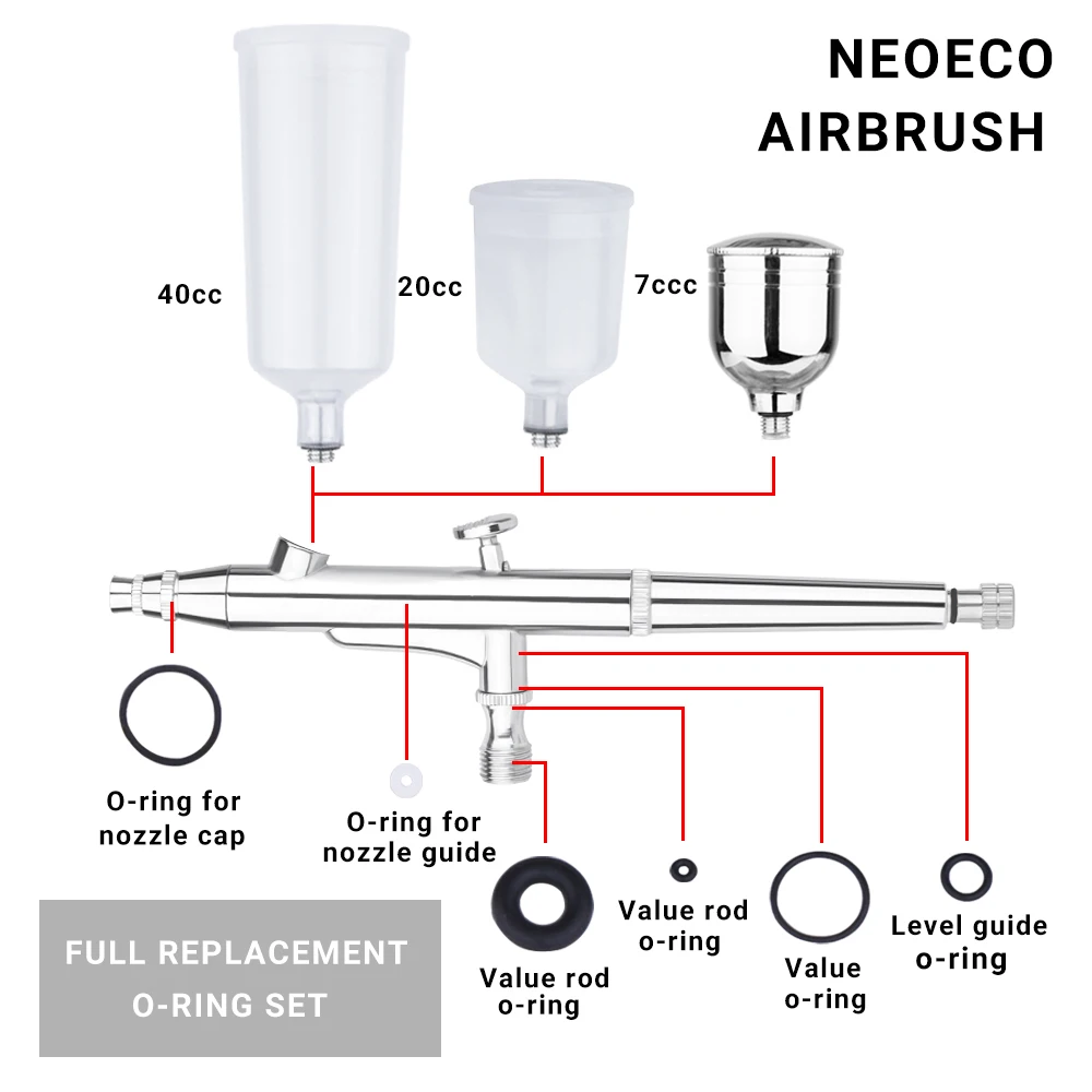 С полным уплотнительным кольцом 6ps, установленным в комплекте, аэрограф будет долгое время, так как вы можете заменить уплотнительное кольцо, когда они сломаются годами позже.