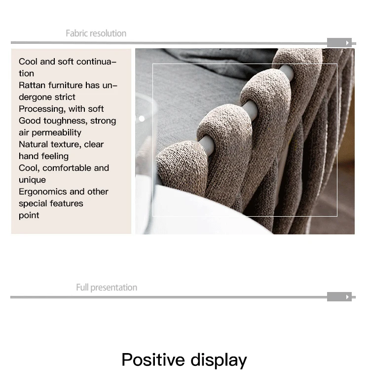 А.Ротанговая Мебель прошла строгую обработку и имеет характеристики хорошей гибкости, сильной воздухопроницаемости, естественной текстуры, освежающего ощущения, комфорта и уникальности и эргономики.