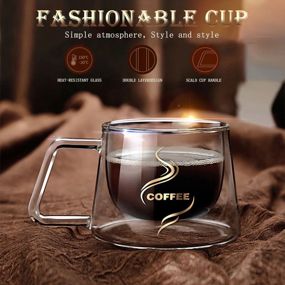 1. Креативный дизайн с двумя стенками: двойное стекло и ручки облегчают чашку, не беспокоясь о ожогах, классические и элегантные, высококачественные кофейные чашки, позволяет вам наслаждаться приятным опытом хорошего времени;