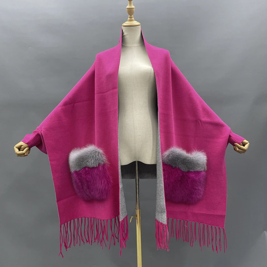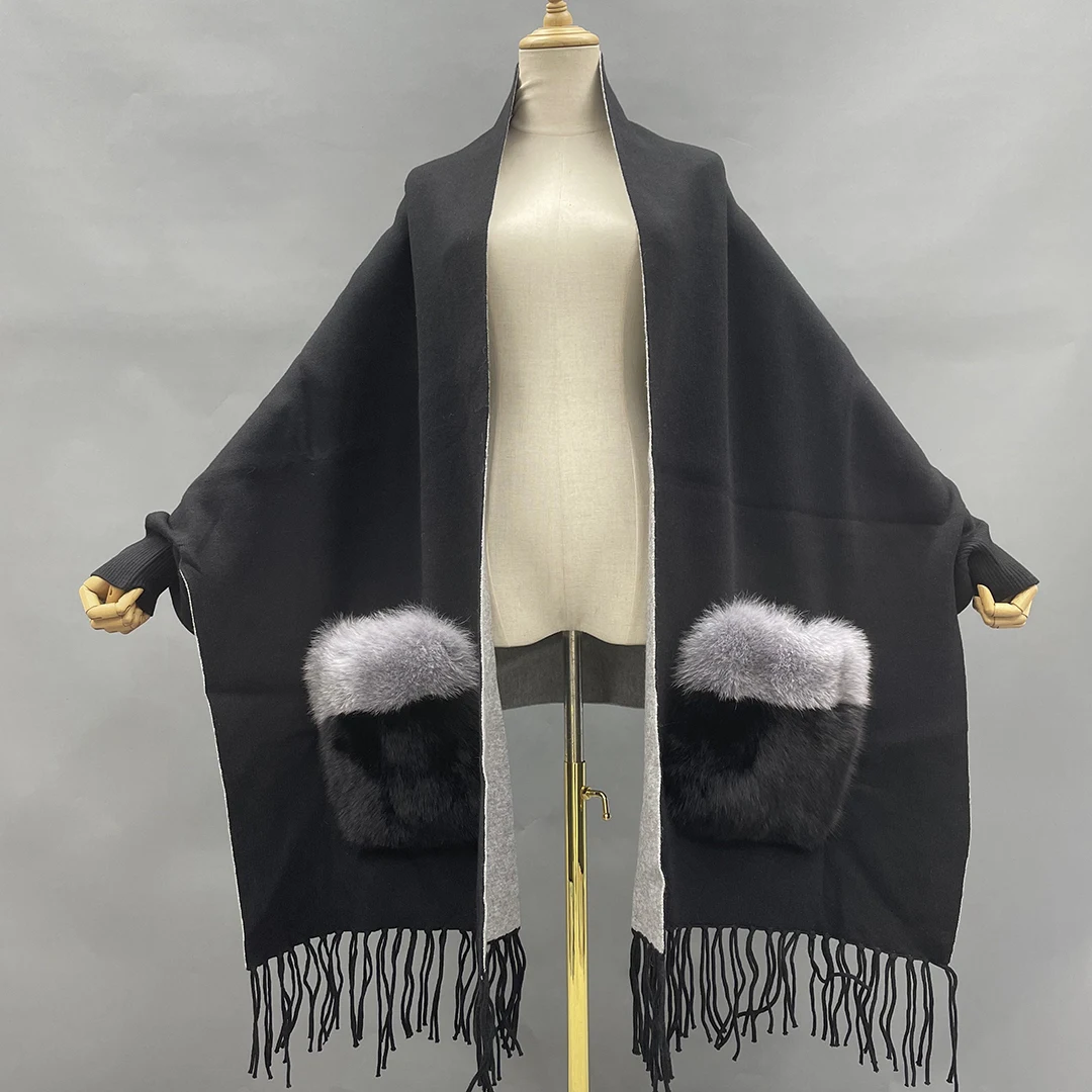 MISSJANEFUR пончо для женщин, зимняя теплая шерстяная кашемировая накидка, пальто для женщин, зима 2021, роскошное натуральное пончо с мехом лисы, плащ, верхняя одежда для женщин