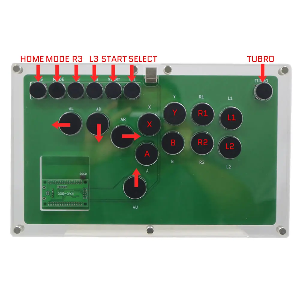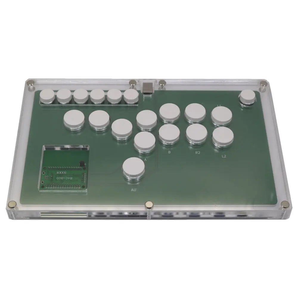 B1-PC-DIY использует полностью акриловую ультратонкую конструкцию, толщина составляет менее 2 см, а многослойная структура позволяет пользователям размещать на панели собственную бумагу для художественного оформления. Он имеет кнопки 4x24 мм (черные Клавишные переключатели Cherry MX) на левой стороне контроллера, вместо традиционного аналогового джойстика, С 8x24 мм кнопками (Cherry MX Black key switches) для кнопок действия на правой стороне контроллера. С помощью технологии горячей замены пользователям удобно заменять их любимые механические переключатели. B1-PC-DIY совместим с ПК/Android с помощью usb-кодера Zero Delay Arcade.