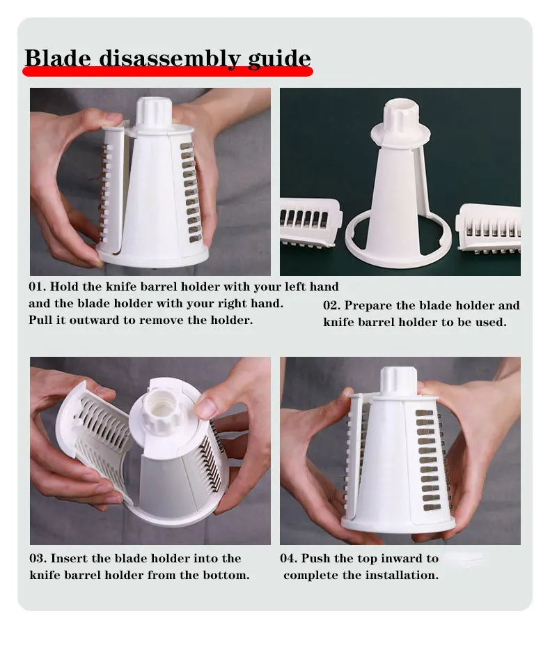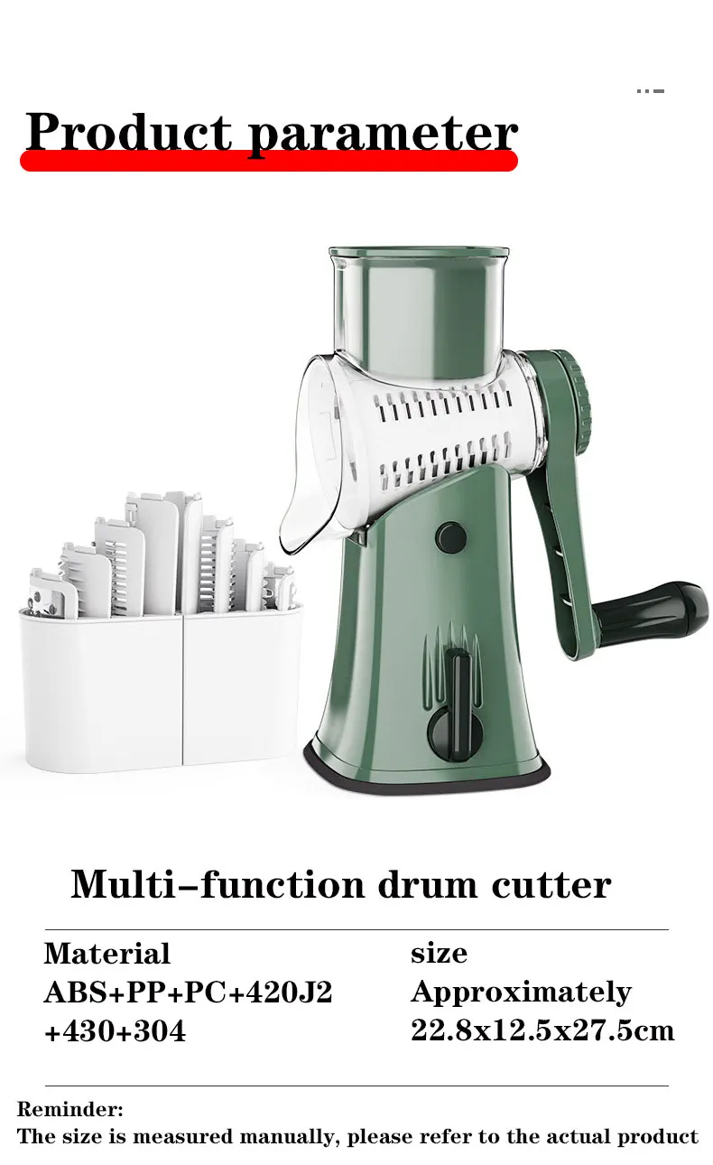 Разумная вращающаяся овощерезка барабанного типа имеет мощные всасывающие ножки для стабильности на вашем столе. Это делает его эффективным и простым в эксплуатации!