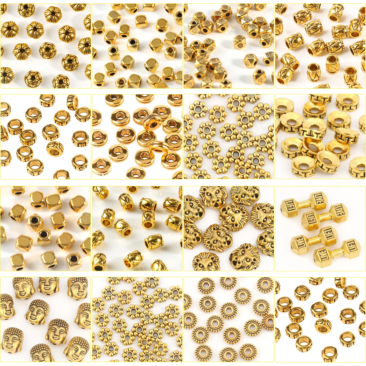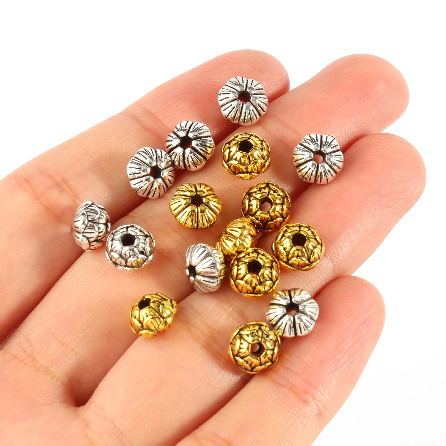 1 упаковка, винтажные Позолоченные Подвески, Обжимные бусины, цветок, диск, Будда, куб, сплав, бусины для волос, ювелирное изделие, сделай сам, браслет, ожерелье