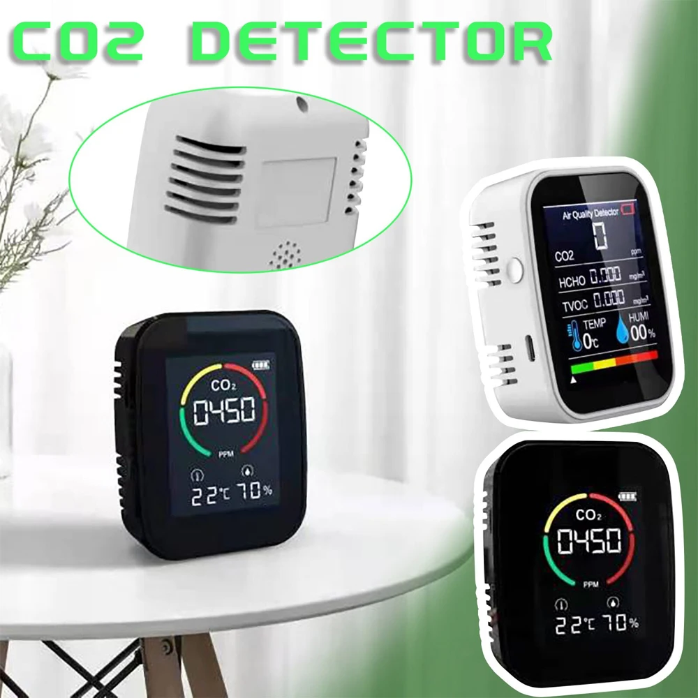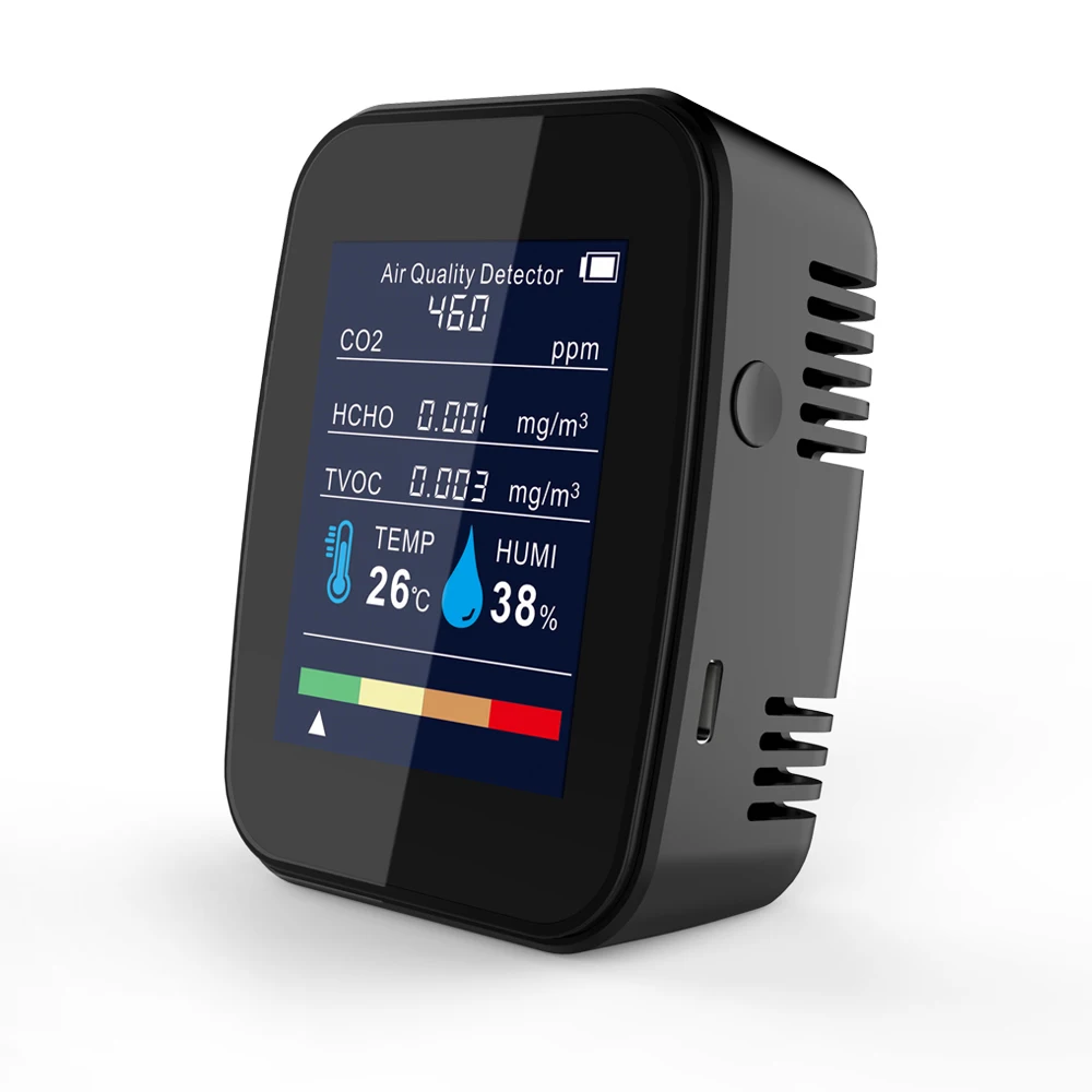 Многофункциональный 5 в 1 СО2 метр цифровой датчик температуры и влажности тестер качество воздуха монитор углекислого газа TVOC HCHO детектор(Черный)