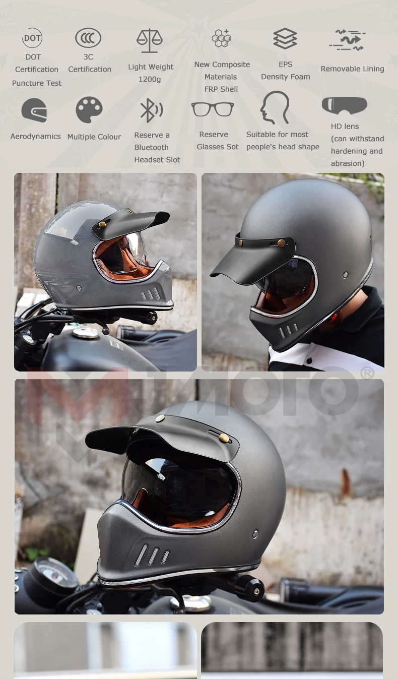 Ретро 3C Полнолицевой шлем точка Сертификация мотоциклетный шлем анти-УФ и HD объектив FRP оболочка мотокросса шлем ветрозащитный унисекс