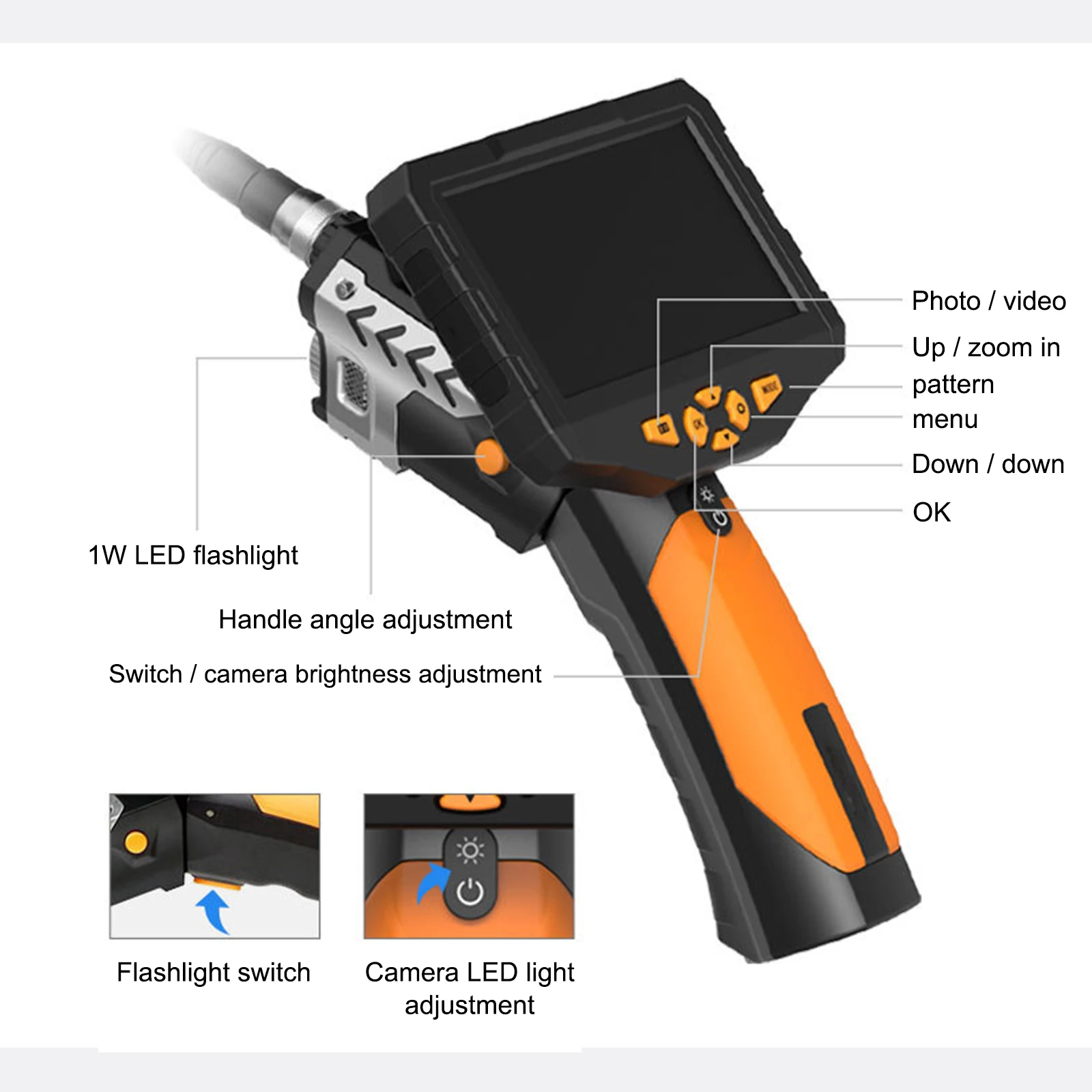8 мм объектив Ручной промышленный эндоскоп камера фото съемки видео запись Steerable Бороскоп 5 м змея трубка с 32G FT