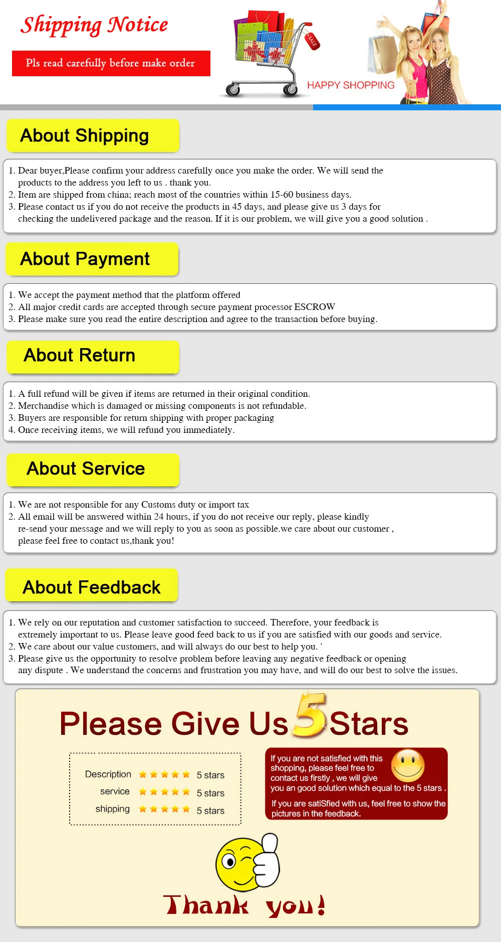 1 год гарантийного срока:Если товар имеет проблемы с качеством в течение 1 года, наш магазин поддерживает бесплатную возврат и замену новых продуктов.