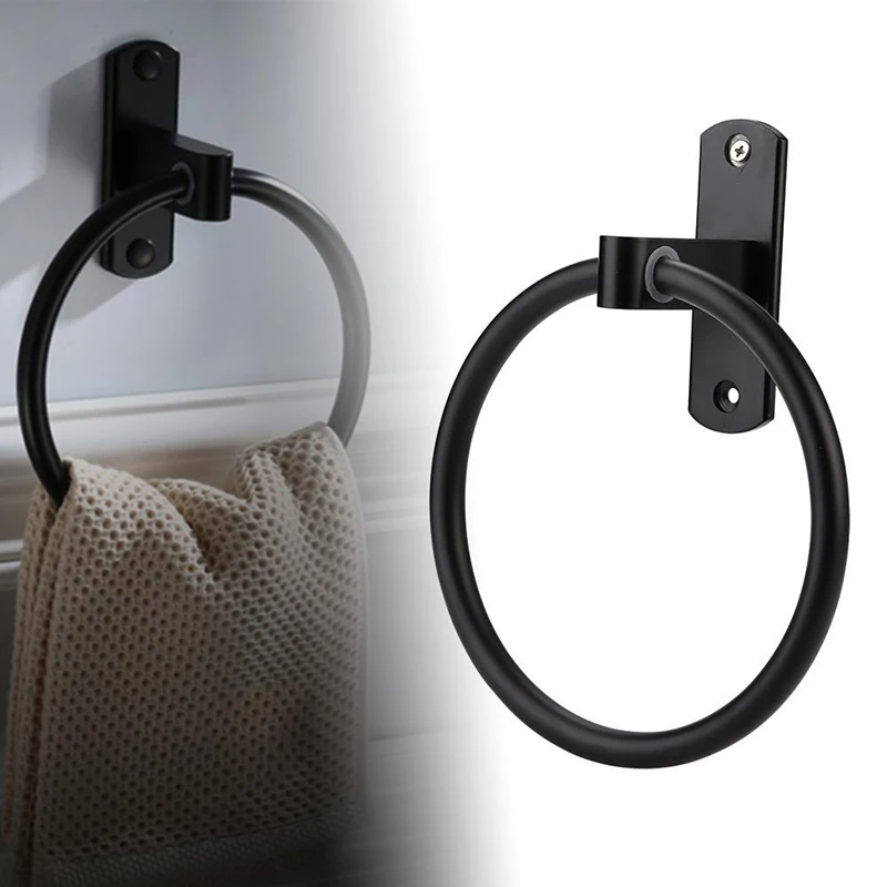 [Sleek Modern Design]Antique style with elegant and simple look, the hand towel holder has an attractive matte black appearance and standard round design, paired well with the other matte black accessories. Smooth edges of the black towel hanger protect your body from scratching and are safe for kids to use.