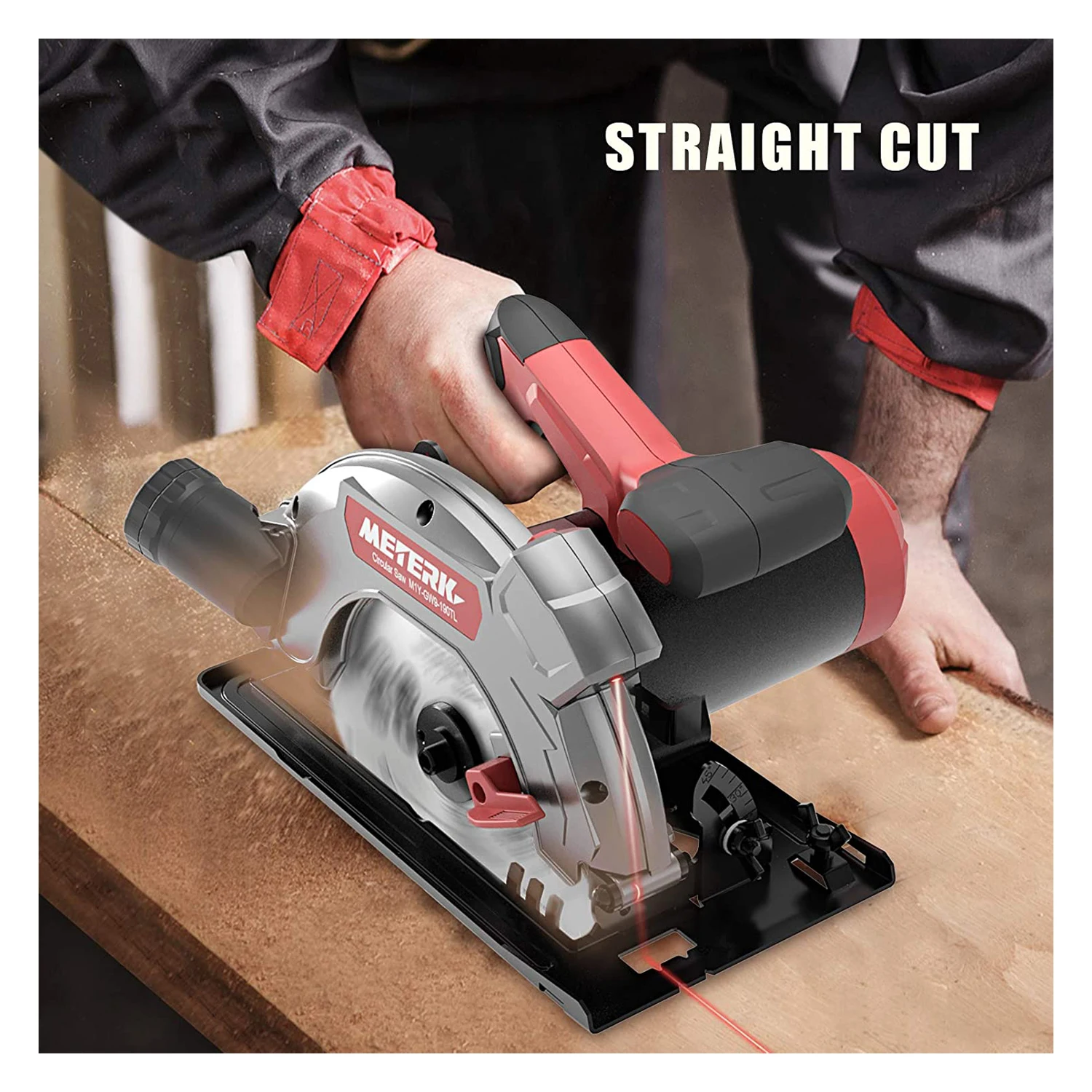【0-45° BEVEL ADJUSTMENT】: Meterk circular saw has a design that can adjust the cutting angle from 0-45°. This design allows the circular saw to have the function of oblique cutting. It meets the needs of users for cutting angles and easily responds to complex cutting parts in the project.