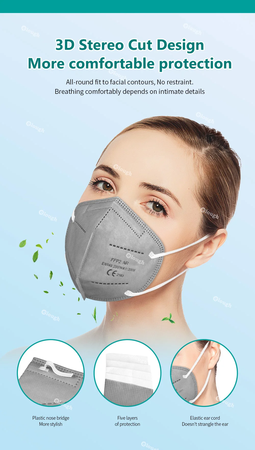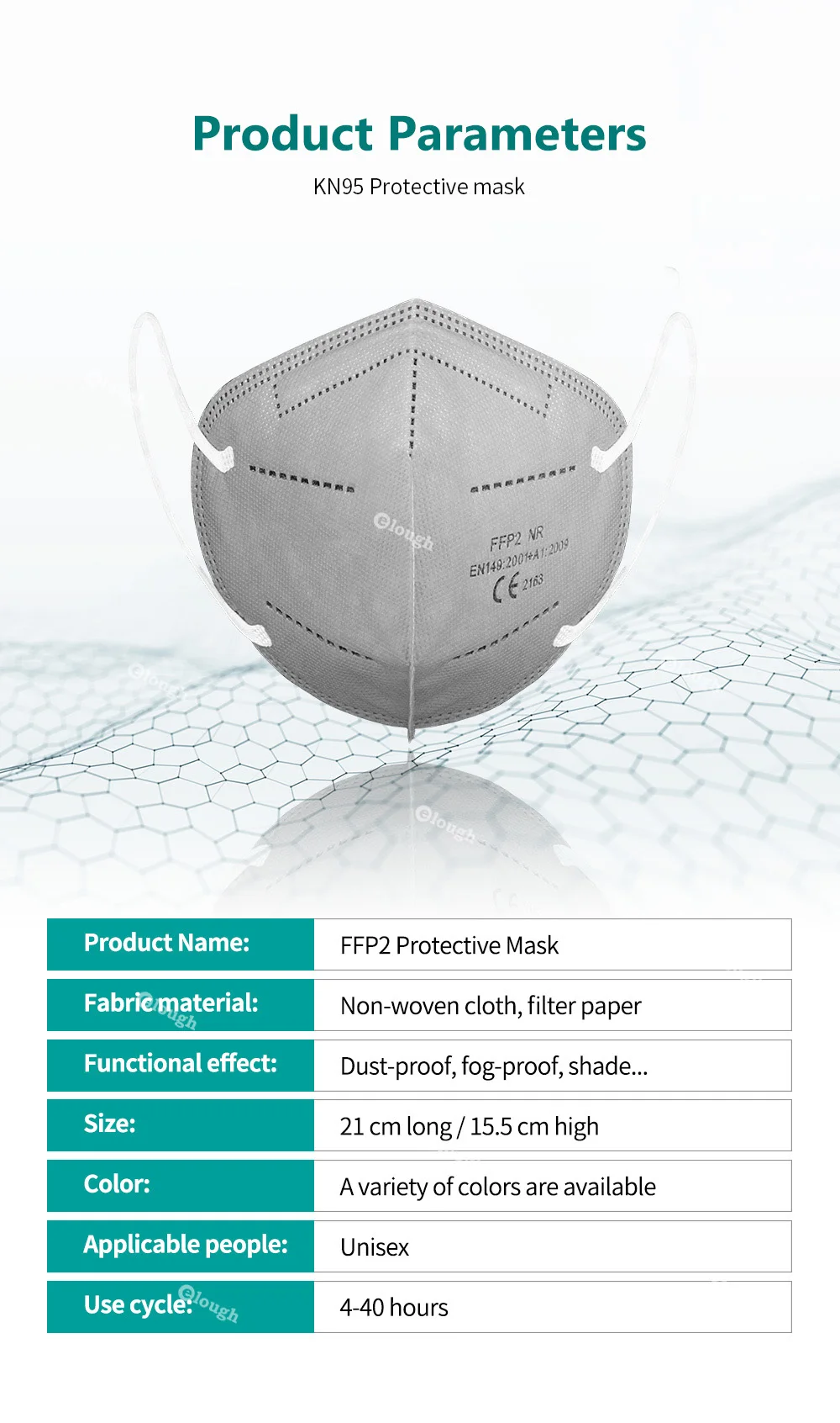 Name:KN95Material:Non-woven Fabric, KN95 Solvent Spray, Thermal Insulation CottonWeight:5g / MaskSize:10.5×14.5cmItem Details: