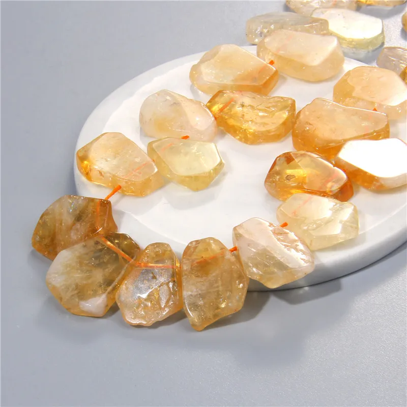 Желтый прозрачный Пентагон цитрин кристалл камень, подвеска, бисер Нерегулярные боковые отверстия лимонный кварц бусины для самостоятельного изготовления ювелирных изделий