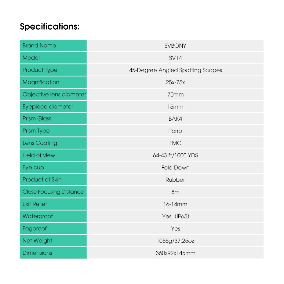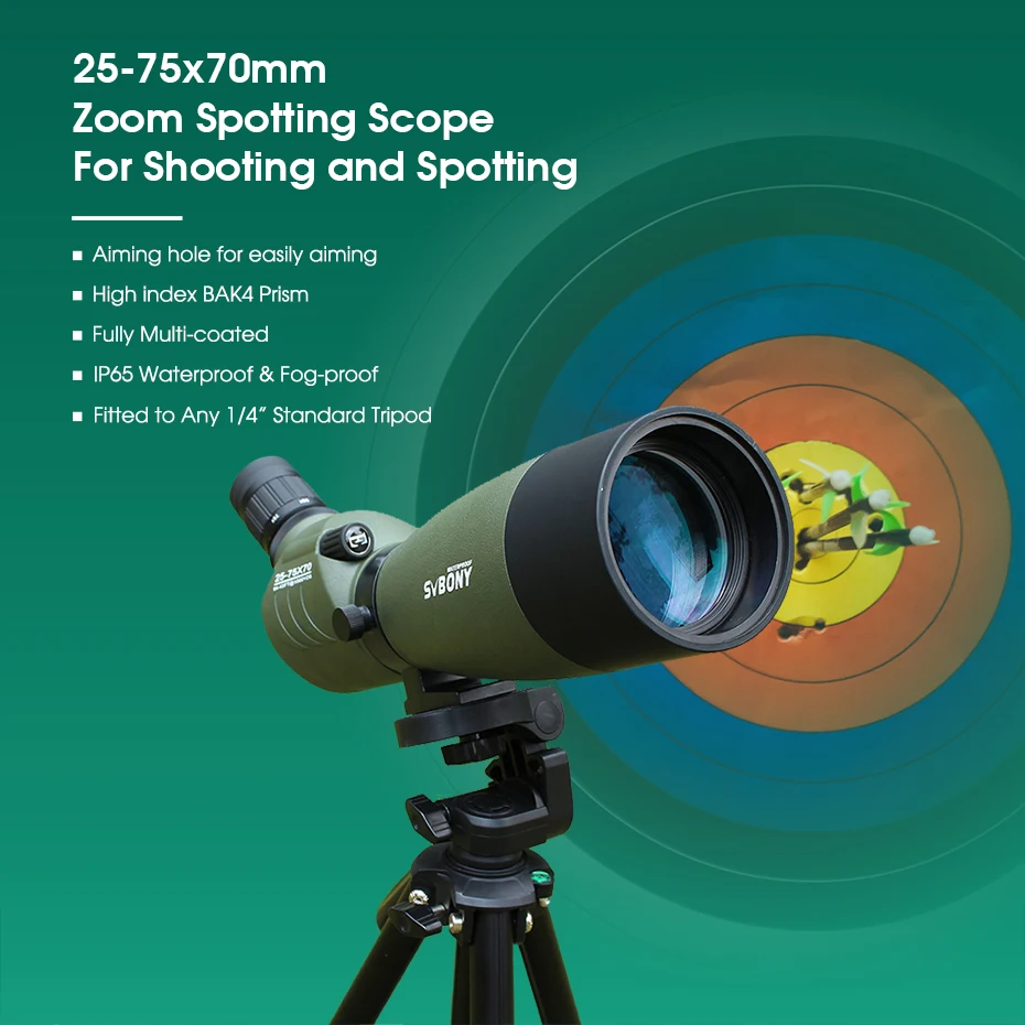 1.SVBONY 25-75x70mm Zoom Spotting Scope
