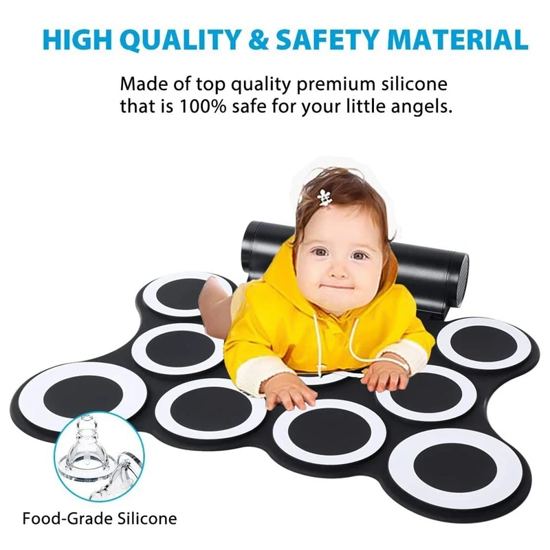 [ROLL UP TO SAVE SPEACE] Whether you are on a road tour or simply practicing from the comforts of your apartment, our compactness and portability of electronic drum set is your best companion, our roll up drum pad with unique roll-up and portable design makes it very easy to carry and save space, perfect for those who don't have a lot of space.