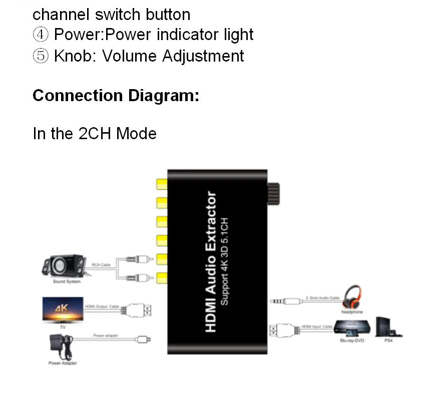 6. Переключатель Pass/2CH/5.1CH, когда вам нужно выход Pass/2,0/5,1 звук. Когда вы выбираете режим звукового выхода 2ch, только порт FR/FL делает звук. Другой интерфейс не имеет звука.