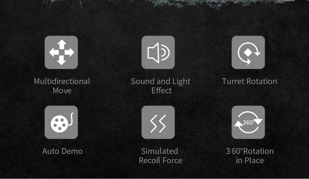 1. Реалистичные звуки стрельбы и действия пушек при пожаре; Имитирующий звук запуска двигателя, звук двигателя, звук пулемета; Движение скорости дуэли: вперед/назад, левый/правый поворот, вращение.