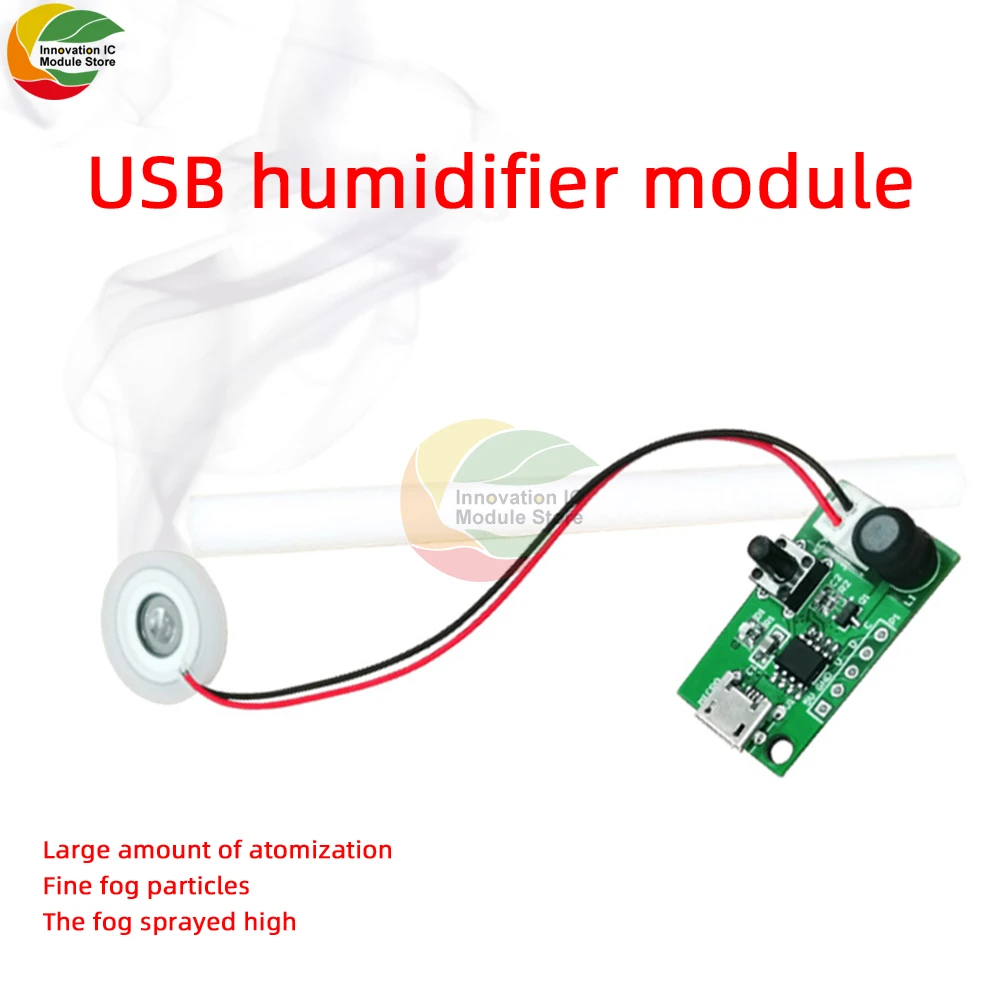 Модуль USB увлажнителя использует принцип ультразвукового высокочастотного колебания для распыления воды в частицы 1-5 микрон И рассеивания их в воздухе, для достижения цели равномерного увлажнения воздуха.