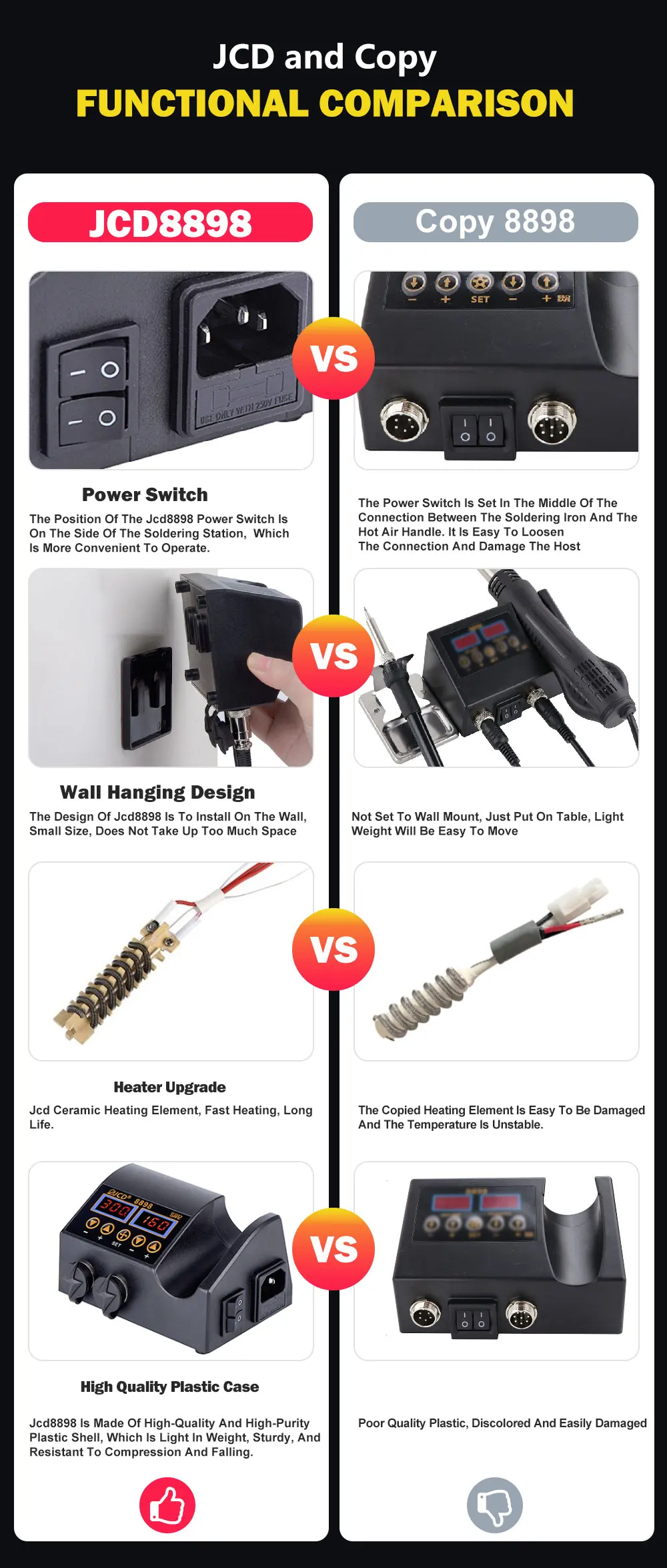 Функция автоматического охлаждения для эффективного продления срока службы нагревателя и защиты нагревателя горячего воздуха.