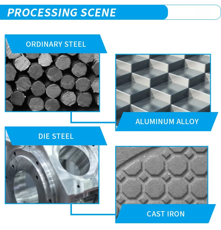 Применимые материалы обработки: углеродистая сталь, чугун, литая сталь, легированная сталь, инструментальная сталь, нержавеющая сталь и т. д.