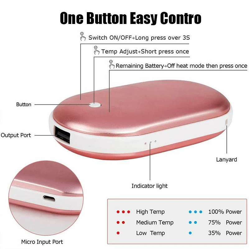 * 3. 2-в-1 грелка для рук, также может использоваться в качестве power bank, чтобы зарядить ваши сотовом телефоне, может быть выполнен в одной руке или в кармане, может использоваться, в котором можно погреть руки с отдельным большим пальцем, колени, живот. Вы можете носить его с собой во время занятий спортом, рыбалки, Походов, Кемпинга, катания на лыжах, путешествий или занятий спортом на открытом воздухе.