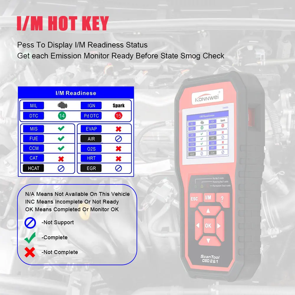 KW850 Список функций автомобильного сканера: