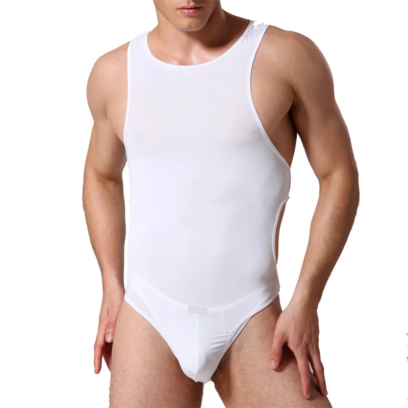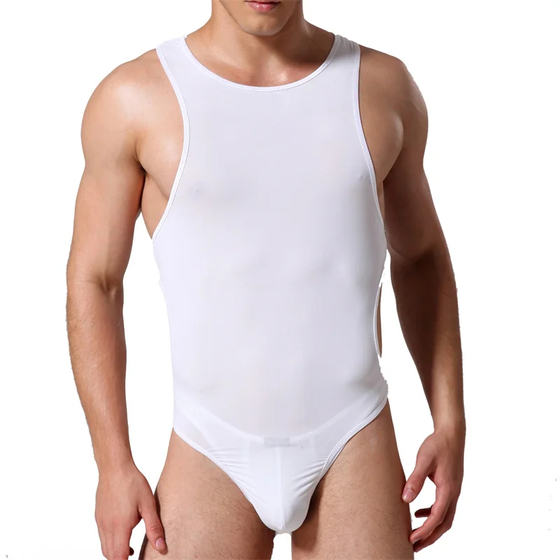 Сексуальное мужское нижнее белье, гладкое Спортивное боди из ледяного шелка с боковыми пуговицами, трико, спортивный костюм для фитнеса, борцовка, мужские трусы, нижнее белье