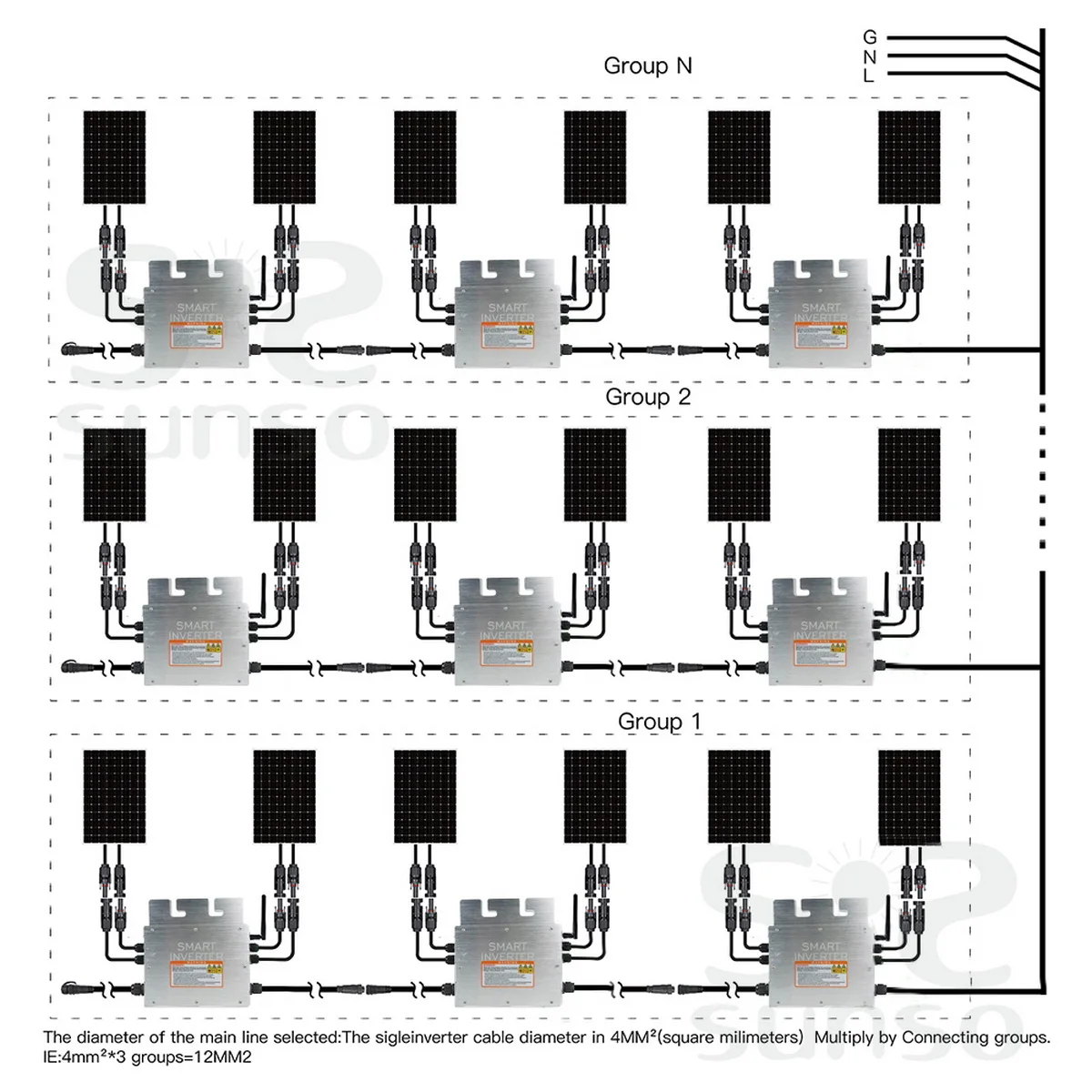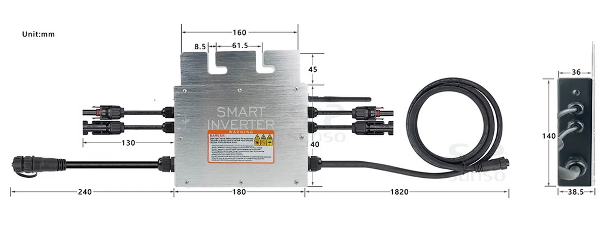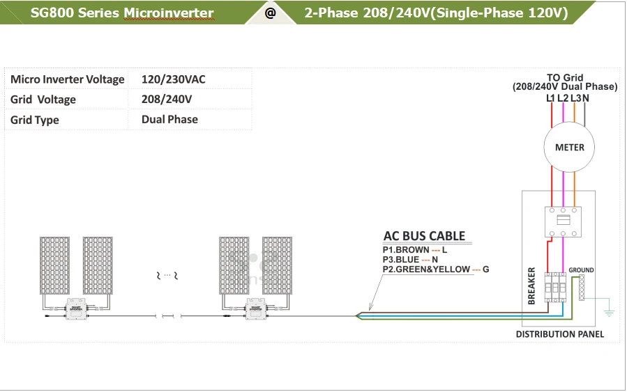 3. Однофазный выход, гибкие 3-фазные PV системы 4. 2,4G Беспроводная связь и мониторинг 5. До 11 единиц (230 В) на ветку 6. Настраиваемый диапазон различного входного напряжения (DC, PV) 7. Интегрированный кабель шины переменного тока, готов к использованию 8. Низкая стоимость, простая установка Базовая структура