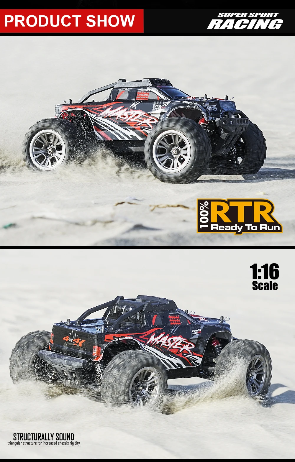 Скоростной гонщик с дистанционным управлением 1,4x4: Этот высокоскоростной гонщик с 4-колесным приводом оснащен высококачественными и прочными компонентами для фантастического вождения. Он имеет ограничение скорости до 33 км/ч и питается от 390 высокоскоростных двигателей. Это лучший выбор для любого уровня монстра RC грузовик энтузиаста.
