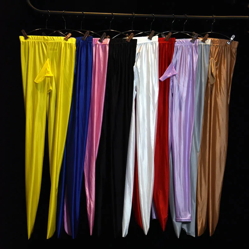 Мужское сексуальное нижнее белье Глянцевая петух сумка пенис оболочка Леггинсы лосины колготки стальная трубка танцевальная одежда Йога тренировочные брюки