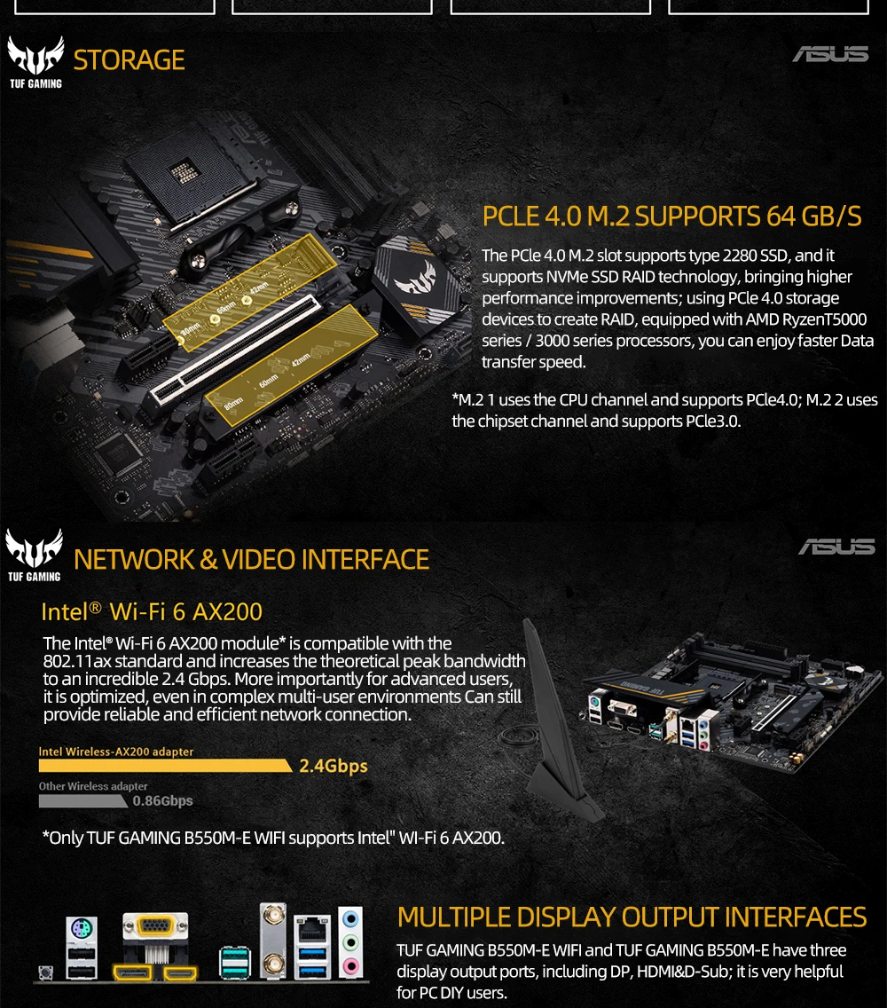 ASUS New TUF GAMING B550M-E (Wi-Fi) Комплект для майнинга материнской платы Ryzen AM4 CPU Micro-ATX B550M AMD B550 DDR4 Xeon 4600(OC) MHz 128G