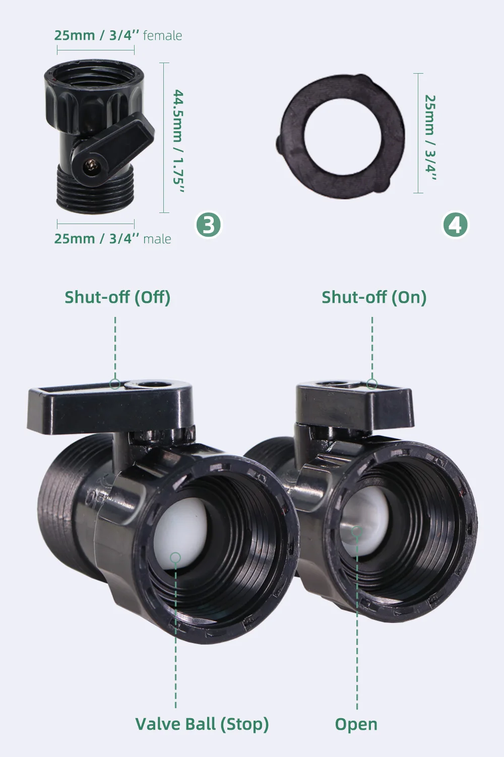 -【Надежный дизайн 】-Разъемы садовых шлангов и выключенные значения изготовлены из качественного пластика, не легко ломаются или деформируются, прочные в использовании, прокладка изготовлена из надежный резиновый, оба материала являются долгосрочными для применения.