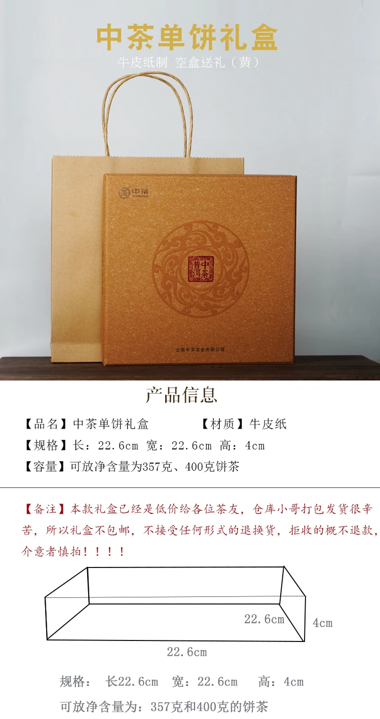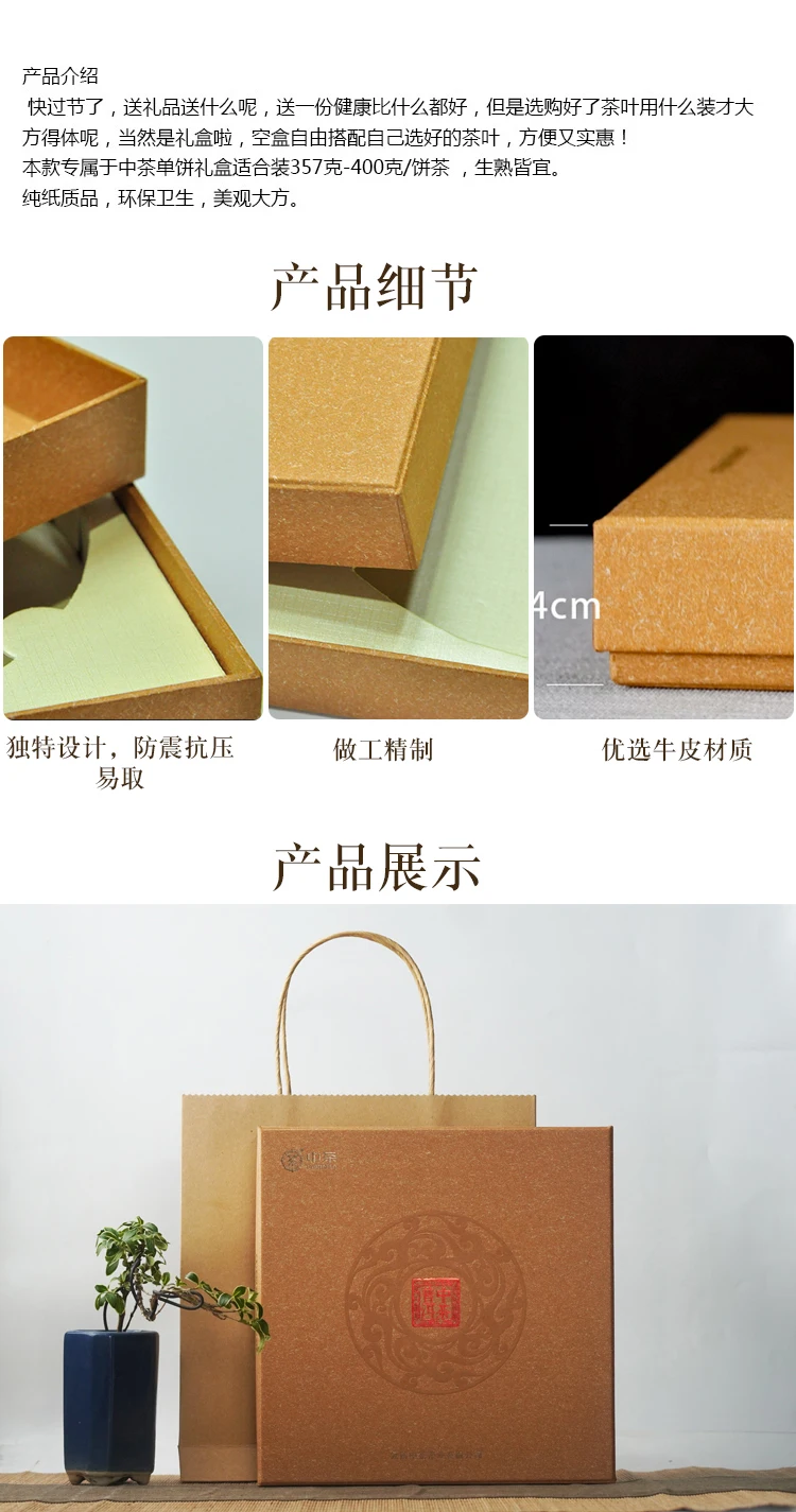 357 г/400 г торт высокого класса чайная церемония пуэр чай пустая Подарочная коробка Zhongcha торт подарочная коробка пустая украшение для подарочной упаковки китайский чай