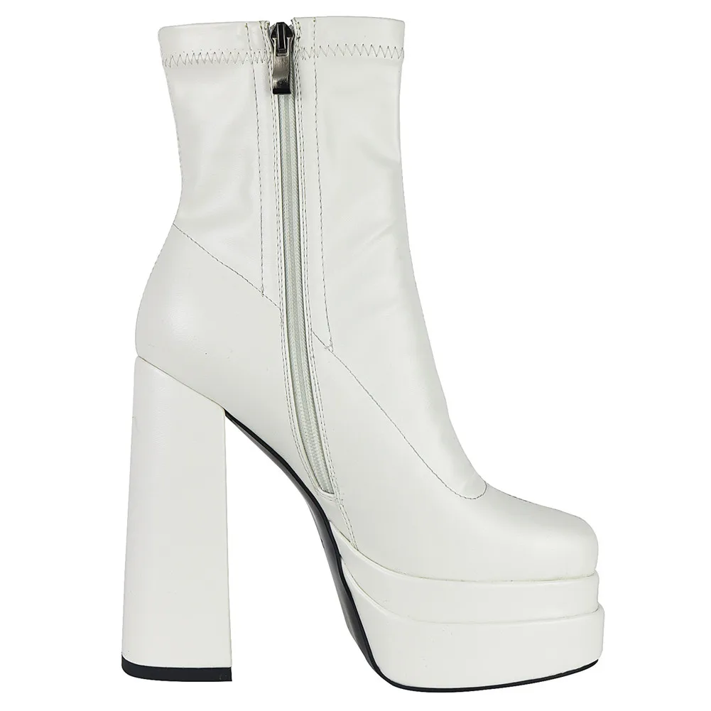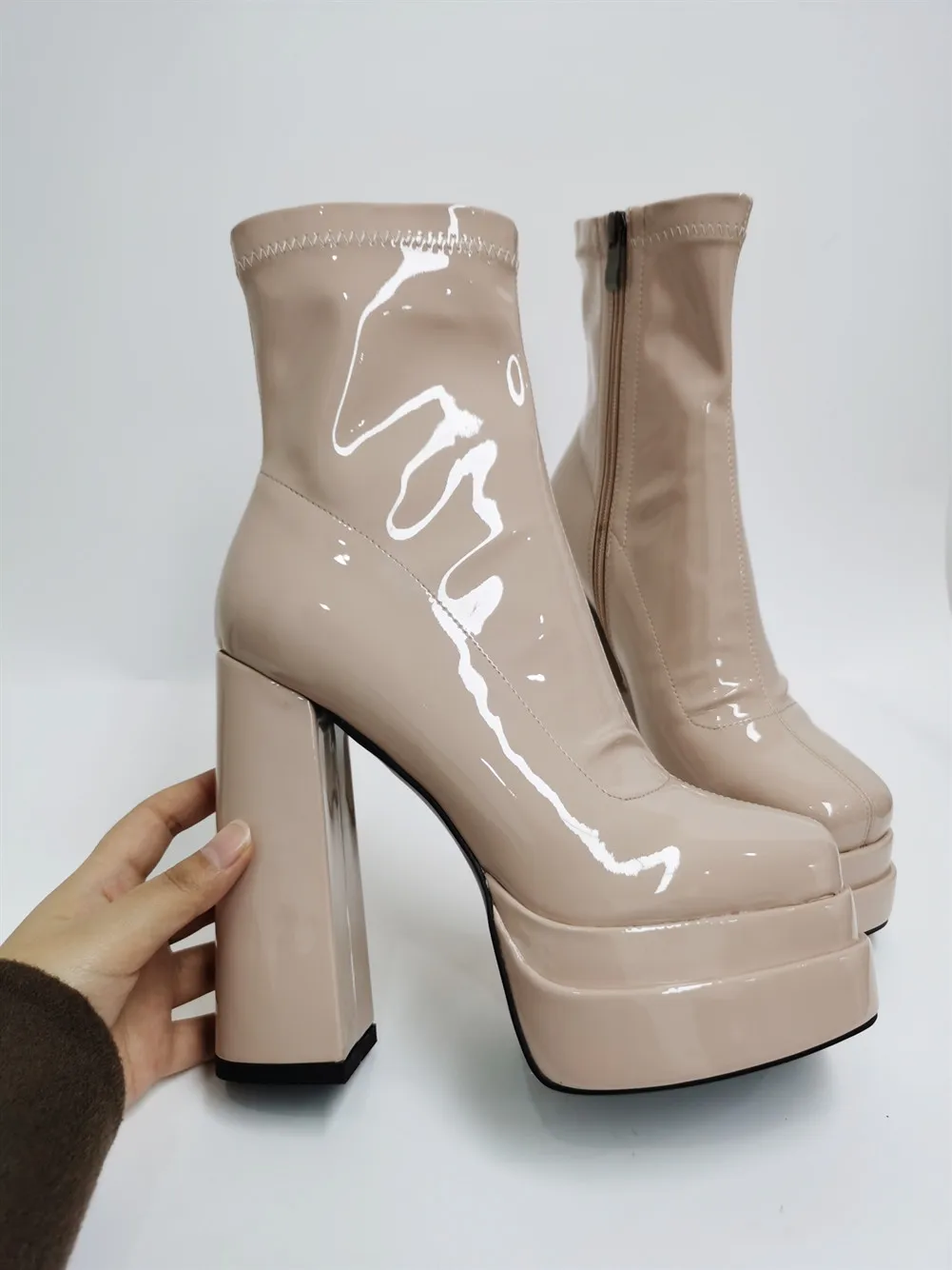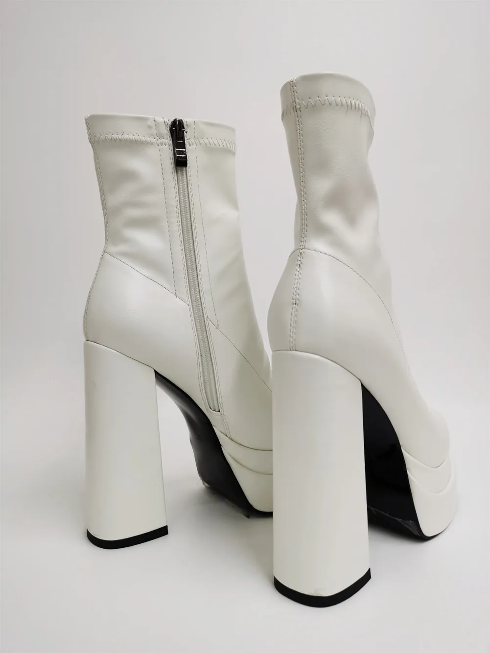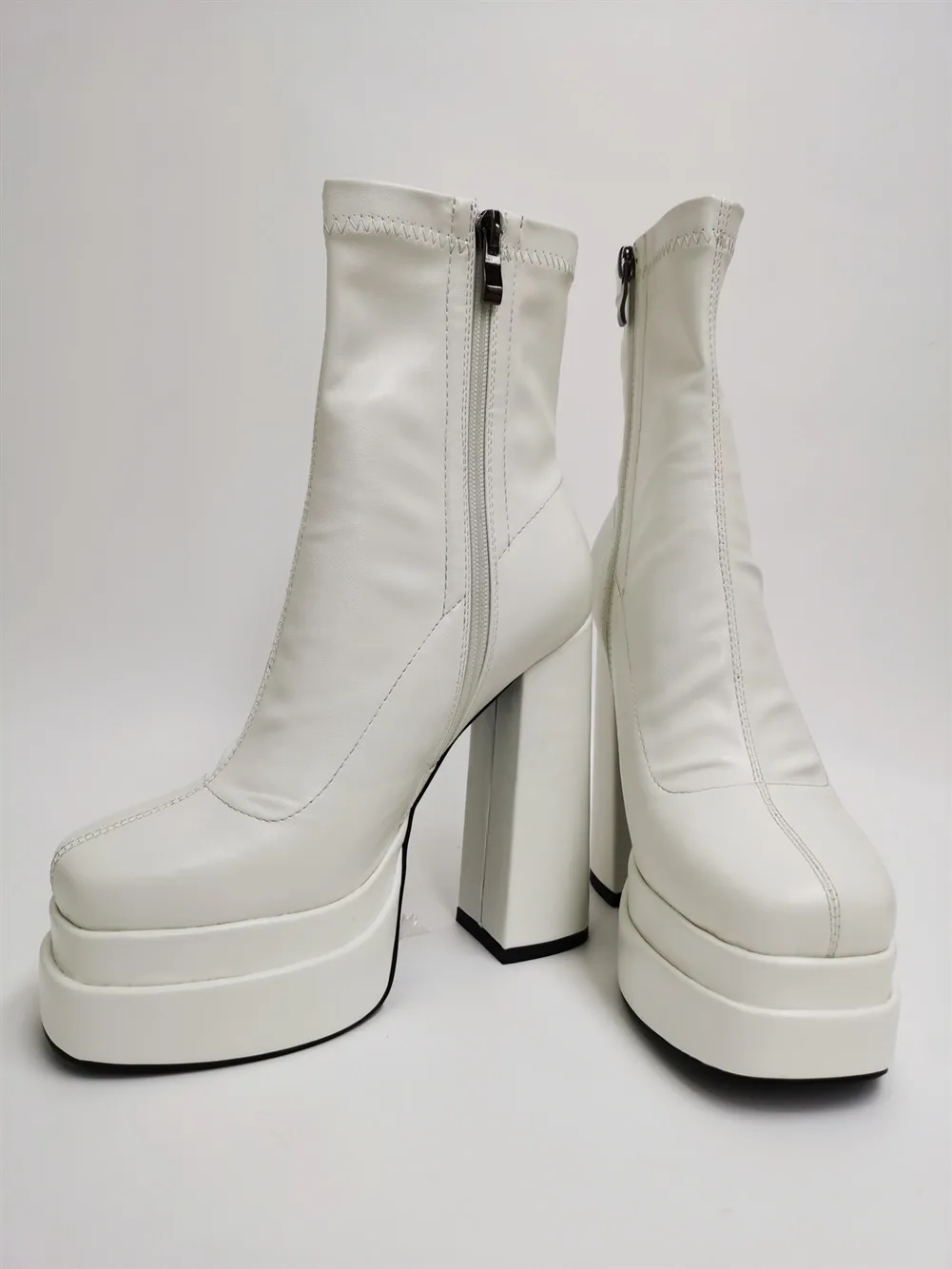Женские ботинки в байкерском стиле; Модная роскошная женская обувь на двойной платформе; Цвет белый; Обувь на очень высоком каблуке на молнии; Новинка