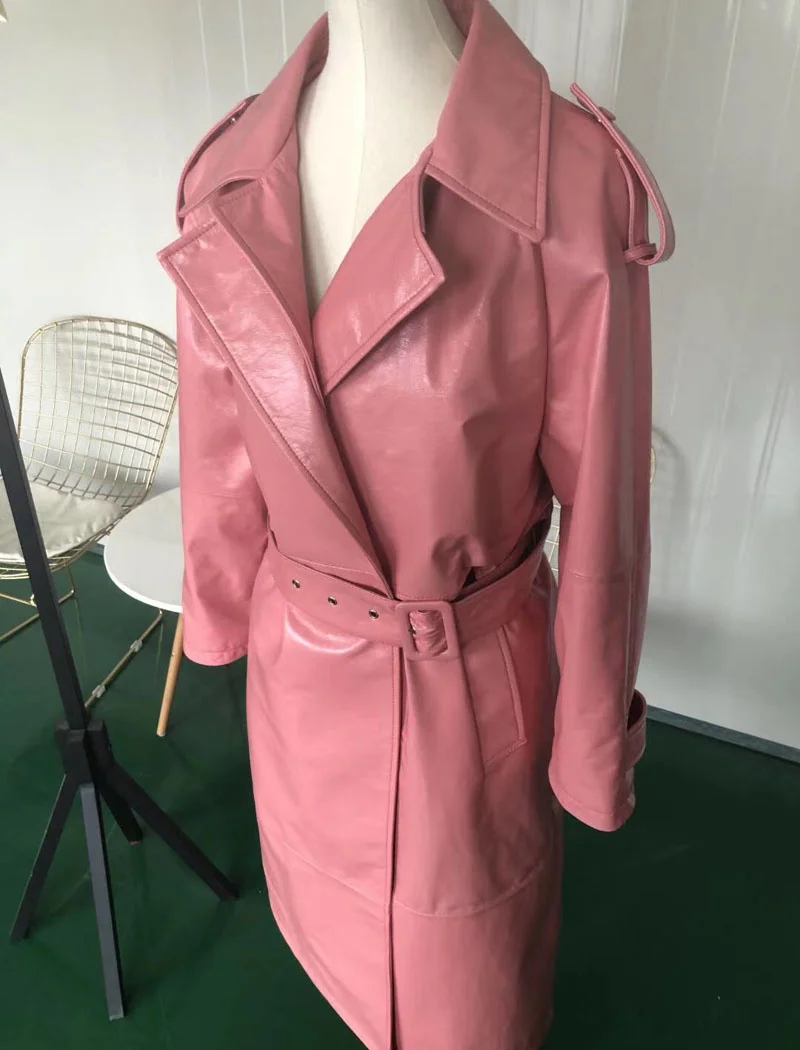 X-long пальто весна и осень 2020 новая куртка из натуральной кожи розовый цвет Повседневная стильная одежда с отложным воротником
