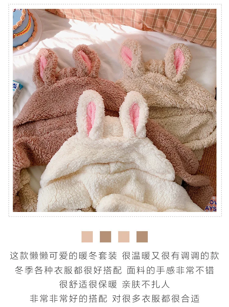 Зимний милый мультяшный кролик, шапка, шарф, перчатки, набор, три в одном, утолщенные теплые плюшевые шапки из овечьей шерсти, повседневные однотонные для женщин и девочек, подарок