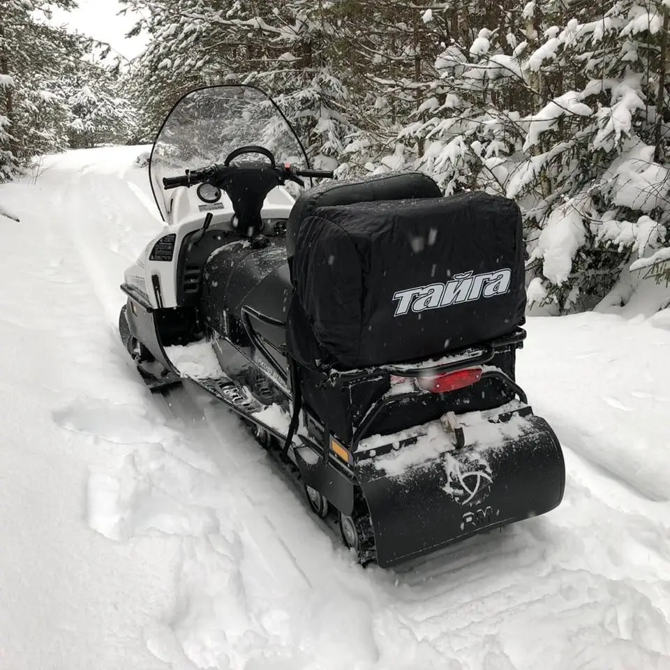 Багажная сумка - кофр, предназначен для установки на снегоход Тайга Варяг, а так же другие модели с похожим багажником. Кофр надежно крепится с помощью ремней и пряжек к раме багажника и сиденью. Спереди, с боку и сверху имеются объемные карманы на молнии. С лицевой части сумки имеется дополнительный карман, в котором расположен чехол с надписью. Защитный чехол с логотипом практически полностью закрывает кофр снегохода от снега, увеличивая тем самым срок эксплуатации изделия. По периметру так же имеются дополнительные ручки для переноски кофра. Кофр изготавливается из прочной сумочной ткани Оксфорд 900 ПУ с водоотталкивающей пропиткой. Дно сумки выполнено из ткани ПВХ. Все наружные молнии закрыты дополнительным клапаном, для ее защиты. Что бы сумка держала форму, в стенки вставлена пена ППЭ толщиной 8 мм., которая так же защищает перевозимый груз от повреждений.