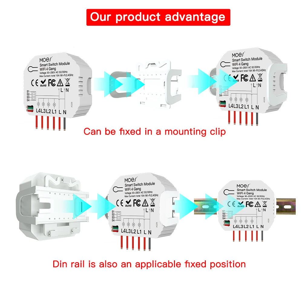 1. Умный модуль Wi-Fi 4 Gang поставляется с мини-дизайном для 4 переключателей в соответствии с британскими и европейскими настенными переключателями; Компактный размер позволяет легко поместиться без изменений в вашем домашнем декоре; превращает совместимые продукты в умные за считанные секунды; Позволяет независимое управление традиционным переключателем без помех; Подходит для перезапуска и сброса переключателя.