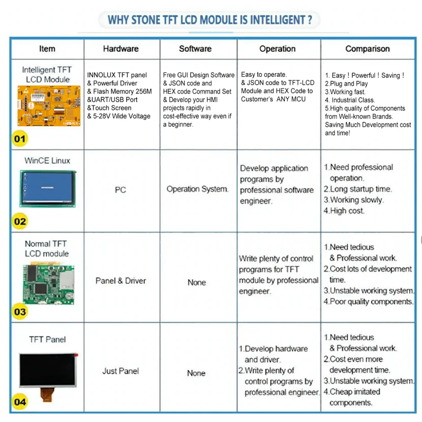 ●Почему выбирают наш дисплей HMI?Наш товар сделан из известные компании Компоненты (промышленный класс) и все прошли в Китае (стандарты CE, по ограничению на использование опасных материалов в производстве/FCC/ISO9001 международной Сертификация и 24 часов испытания вызревания. 3 года гарантийного срока; 0.1% ставка ремонта в год. Благодаря этому высококачественному программируемому ЖК-дисплею с сенсорным экраном вы можете легко добавлять аудио, видео и анимационные ресурсы в свой проект HMI, управлять статусом и наклоняться, редактируя эти атрибуты ресурсов, создан яркий и интуитивно понятный интерфейс HMI. Кроме того, профессиональная техническая поддержка всегда для вас.