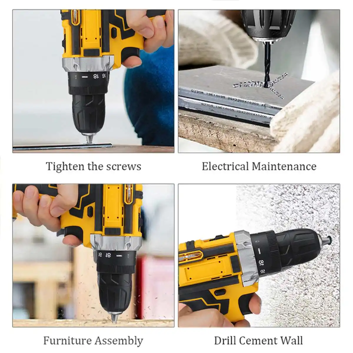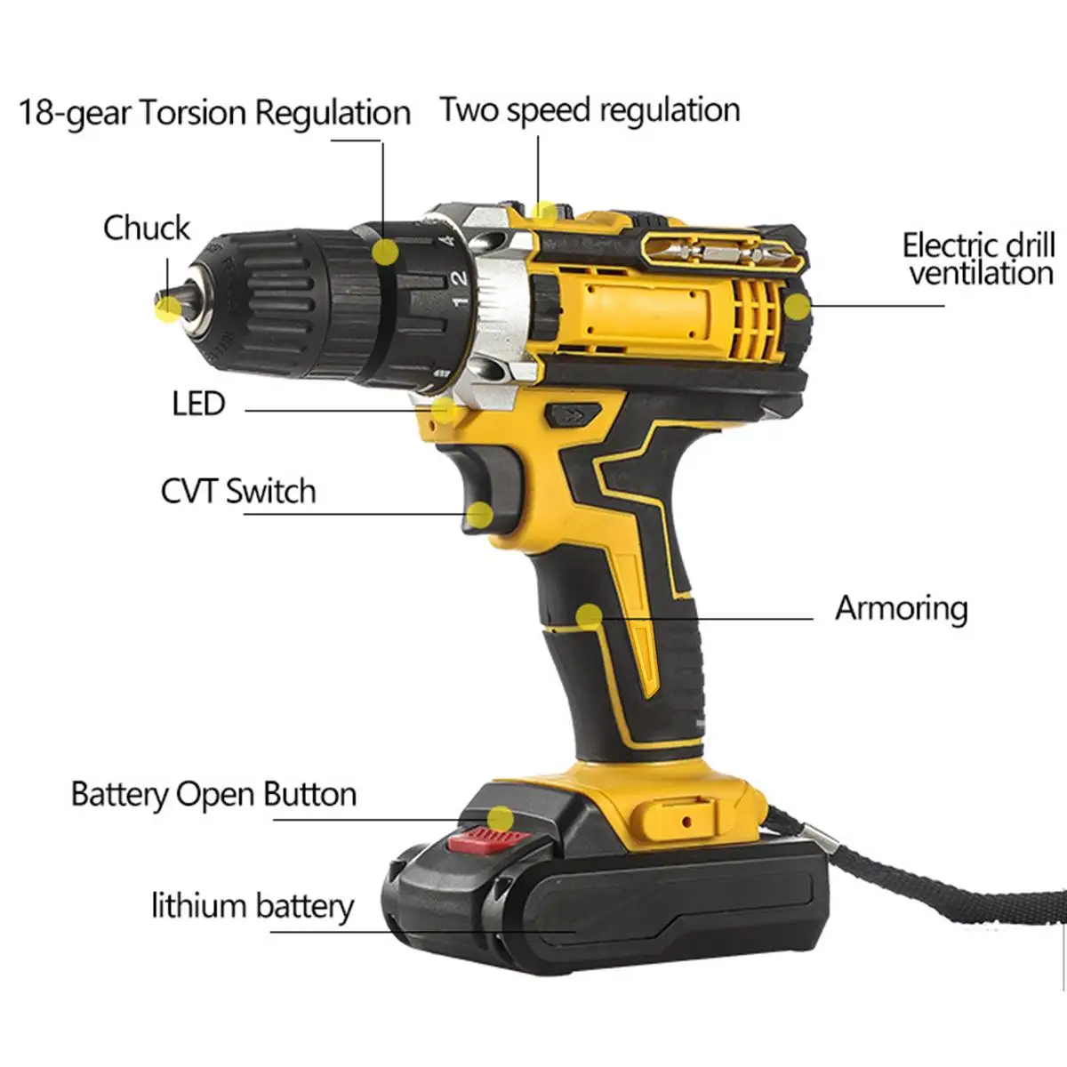 -Функция отвертки: специальная передача для запуска винтов, регулировка подходящего крутящего момента с 25 + 11 настройками крутящего момента