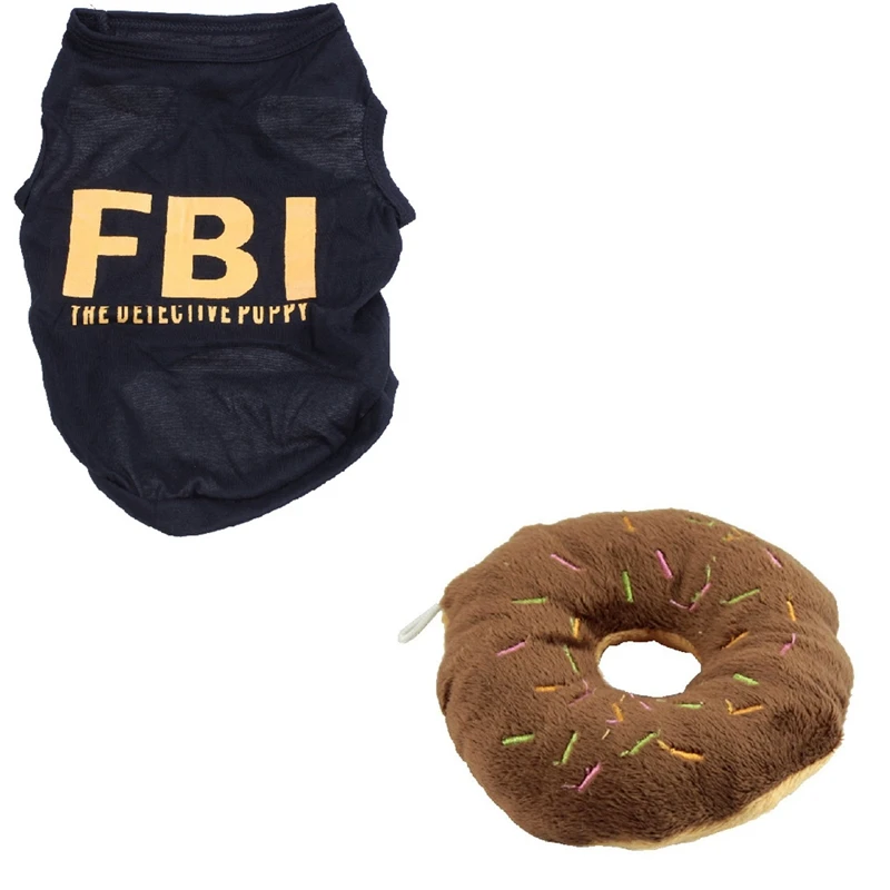 Пищалка для собак, щенков, кошек, животных, пищалка, звуковая игрушка с домашним животным, лето, ФБР, детектива, щенка, черный жилет, футболка, M