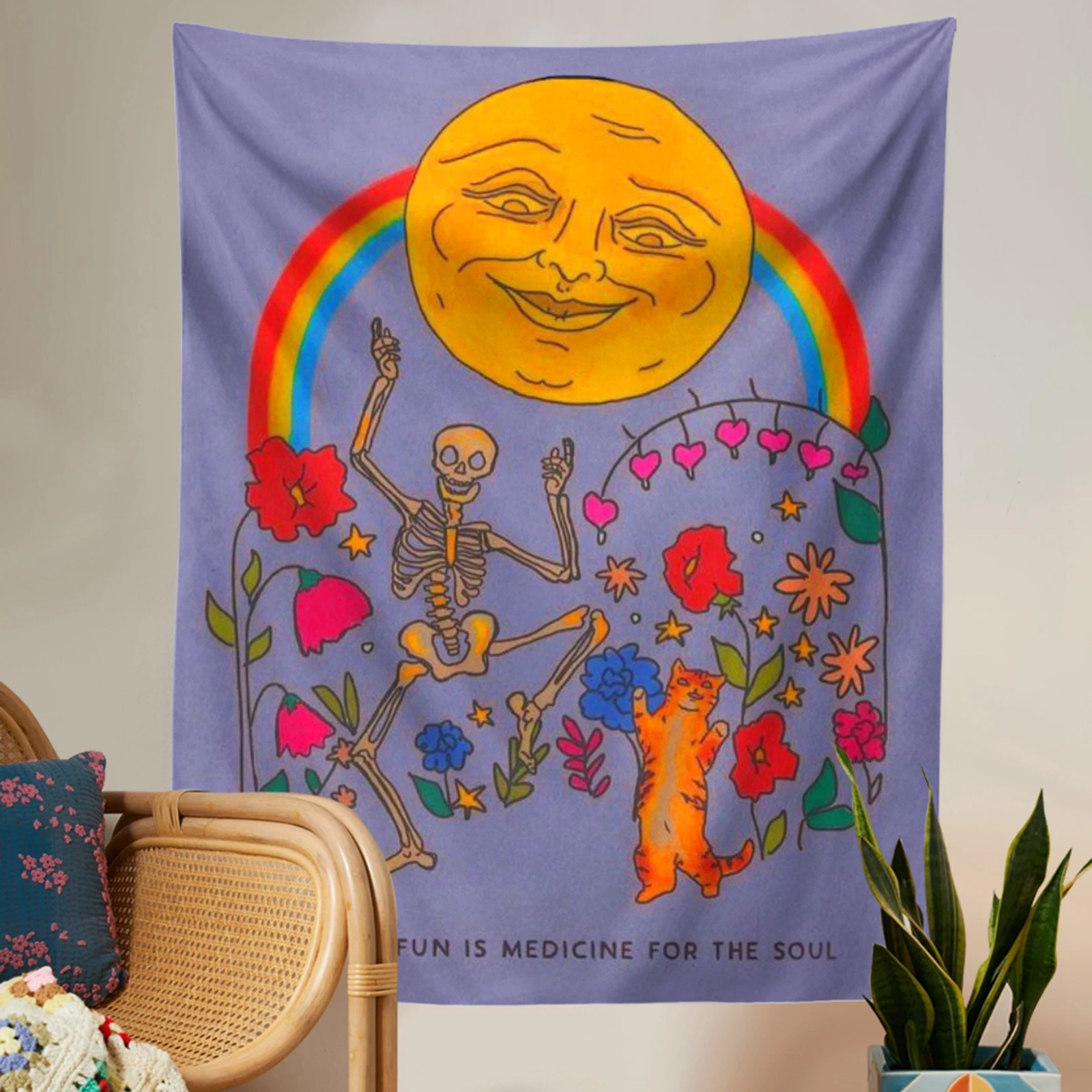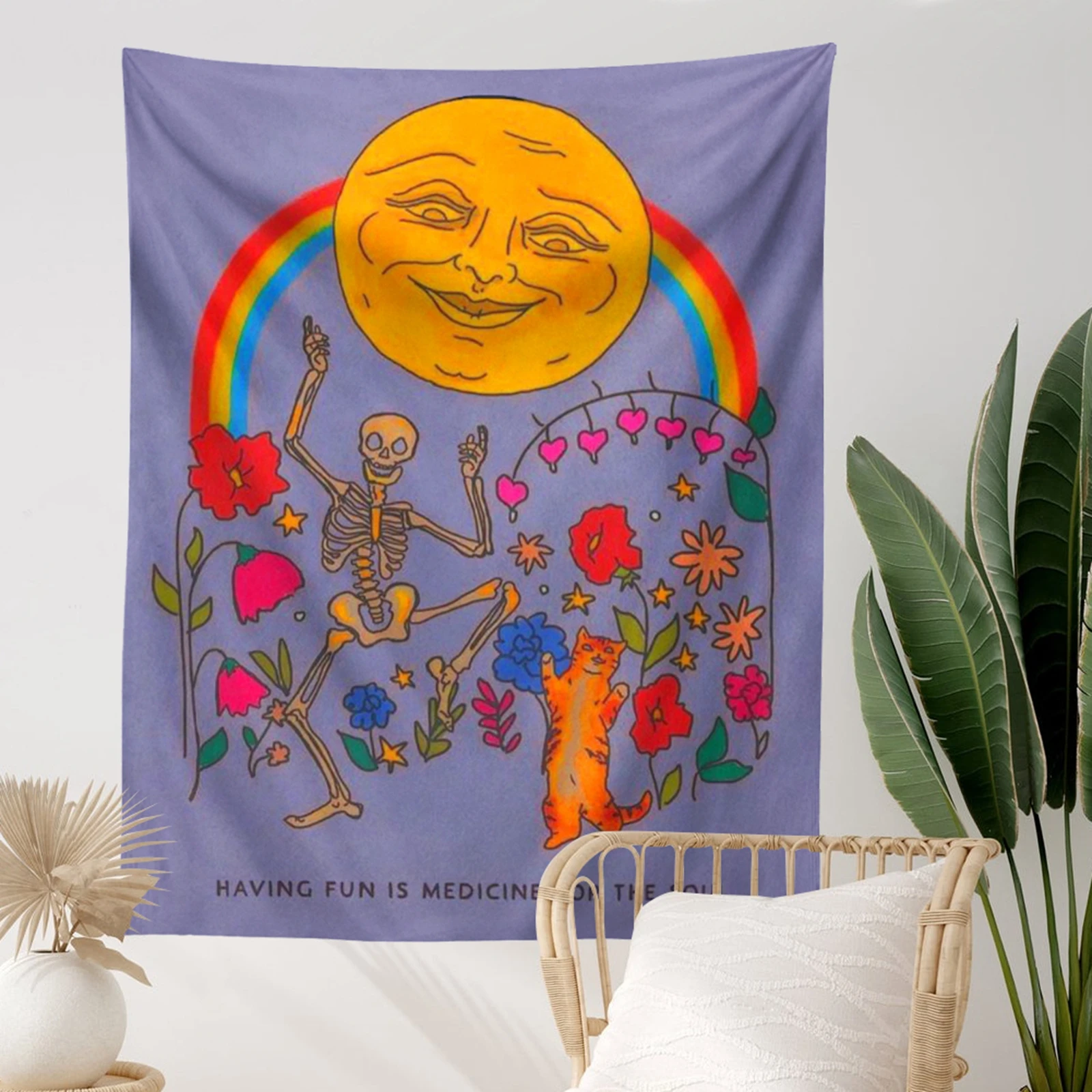 Изготовлен из высококачественной полиэфирной ткани, легкий, мягкий и прочный. Технология печати высокой четкости, не легко выцветает, легко моется, машинная стирка. Отлично подходит для настенных вешалок, пляжных пледов, одеял для пикника, вешалок для крыльца, скатертей, покрывал для кровати, чехлов для диванов, украшения для общежития, потолочного декора, оконных штор или идеальный подарок для любого случая.