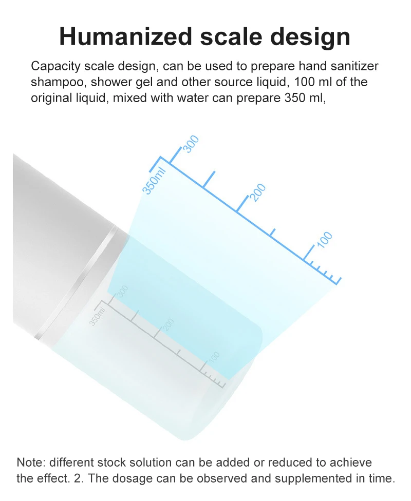 3. Классический минималистичный дизайн может быть легко интегрирован в ванную комнату, кухню и другие среды. Дезинфицирующая бутылка для рук изготовлена из высококачественного матового материала, который является чистым и сухим.