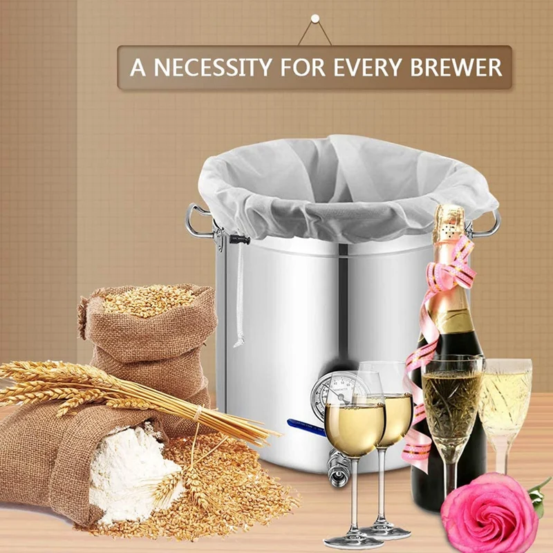Многоразовый, безопасный и санитарный-делает его идеальным для использования с любым из наших чайников из нержавеющей стали. Brew-in-a-Bag-это зернистый пивоваренный раствор, который является более простым и экономически эффективным способом производства вкусного пива. Он также используется для различных применений за пределами пивоварения! Отлично подходит для всего, что требует сетчатого мешка для приготовления пищи или фильтра.