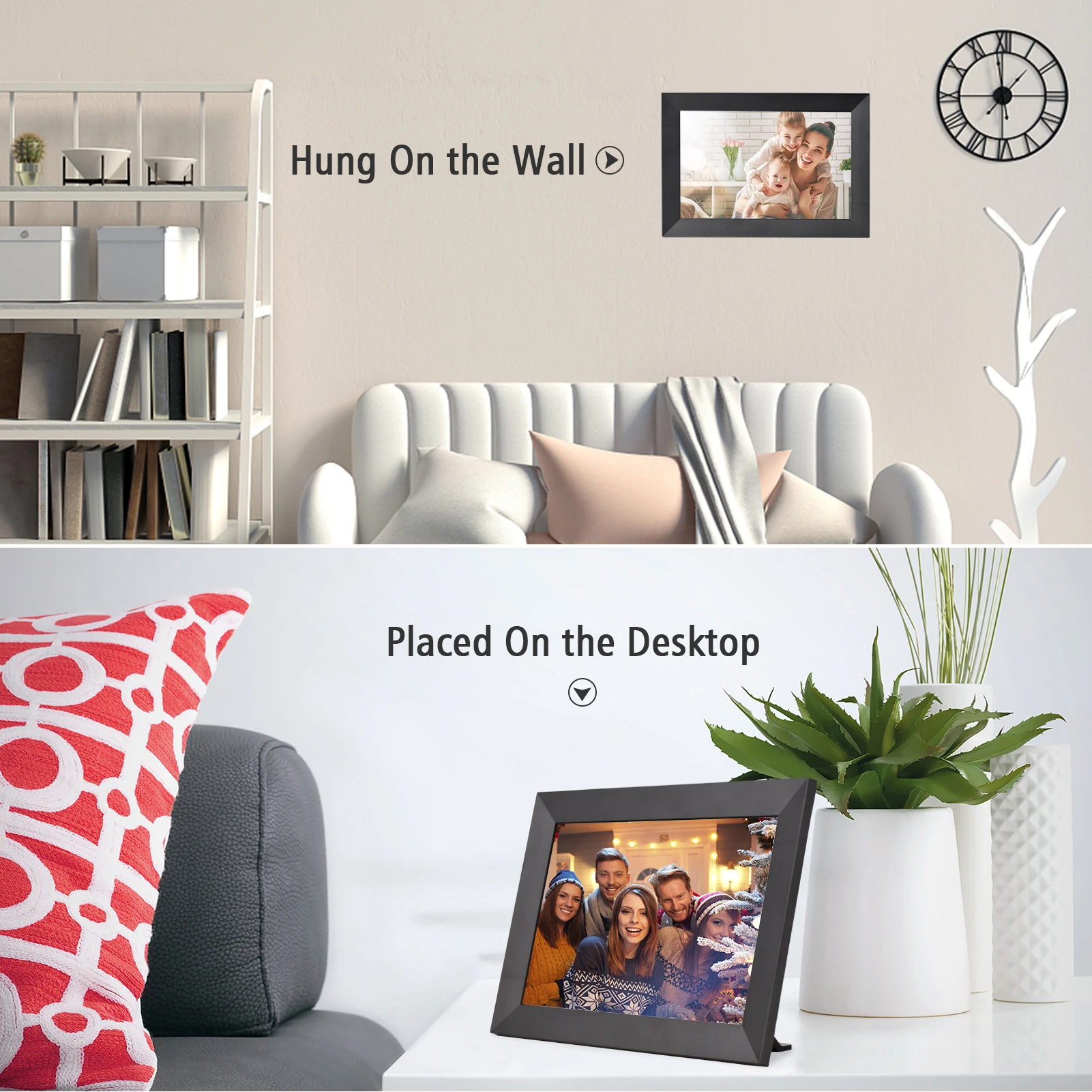 【Умная Wi-Fi фото Frame】Поддерживает Wi-Fi подключение, вы можете добавить людей в список «мои друзья» и поделиться новыми фотографиями/видео с людьми, которых вы любите, где бы вы ни были. Это поможет вам оставаться рядом с Вашими родными и друзьями.
