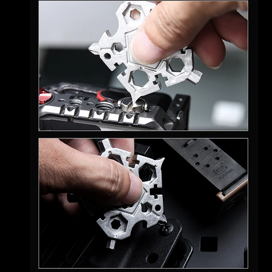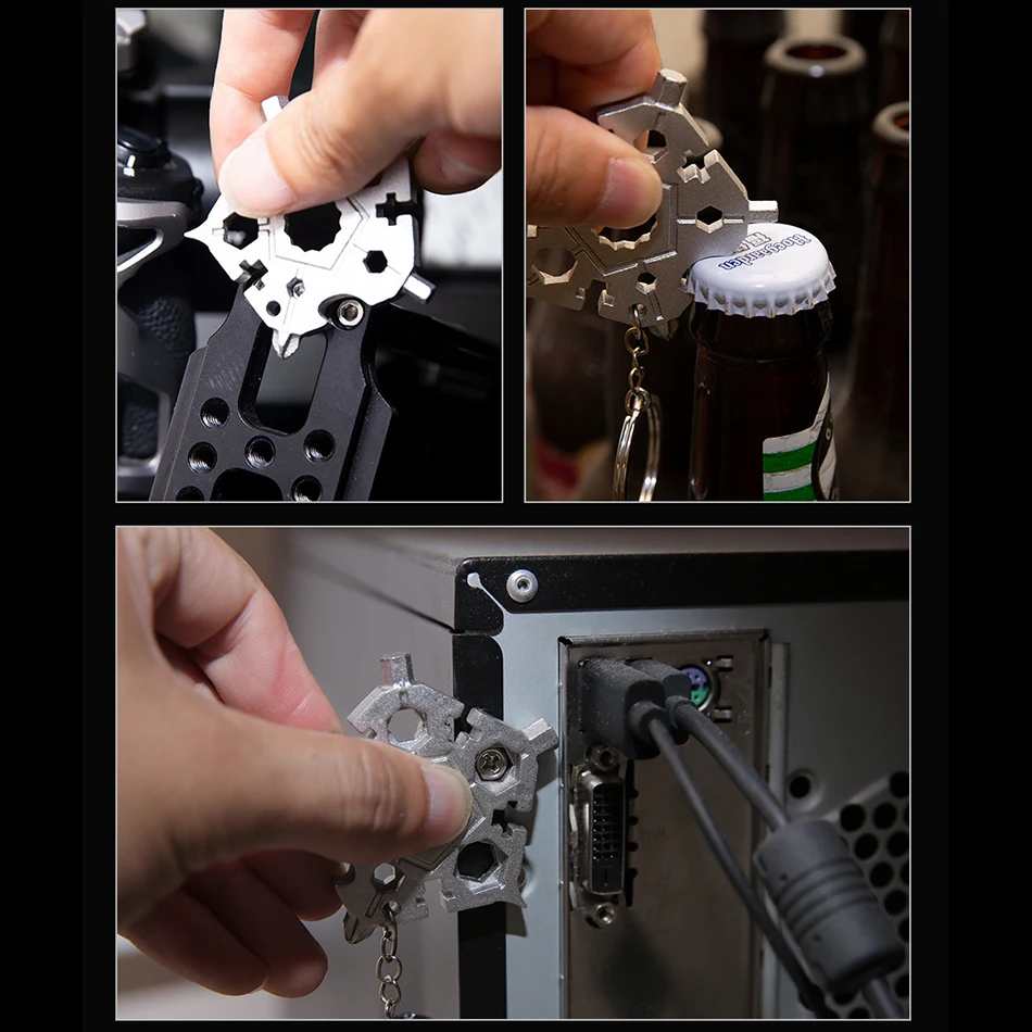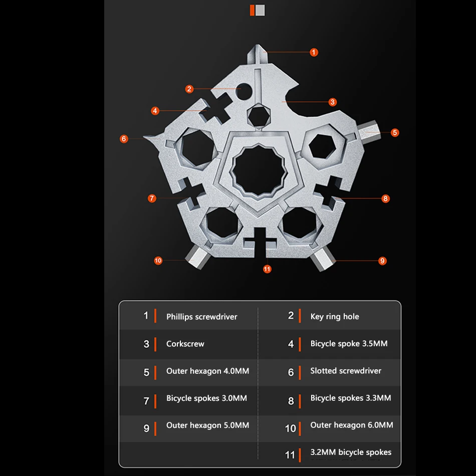 1. Многофункциональный пятиголовый ключ 23 в 1 изготовлен из литой стали, с толстыми материалами, полной текстурой, высокой твердостью и долговечностью.