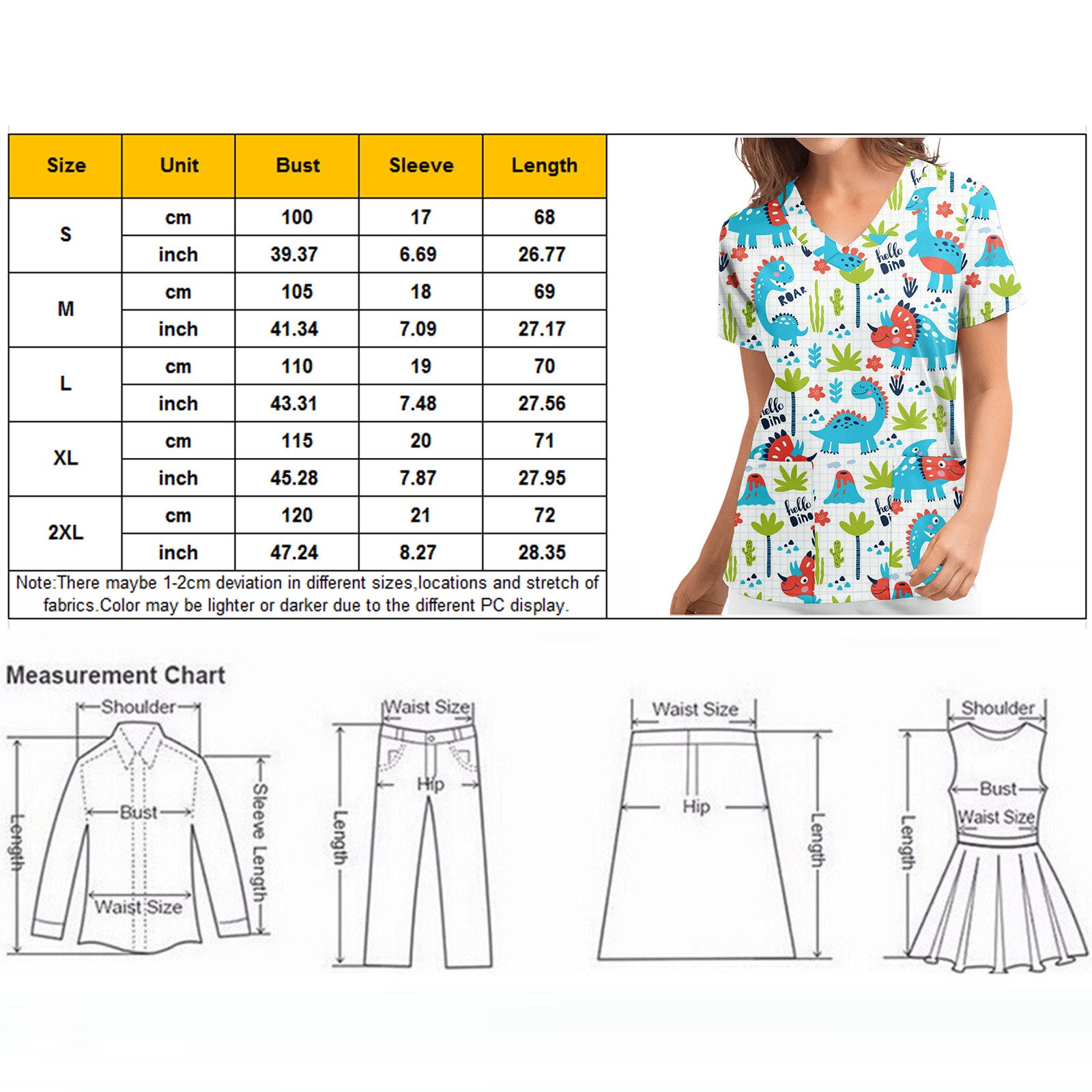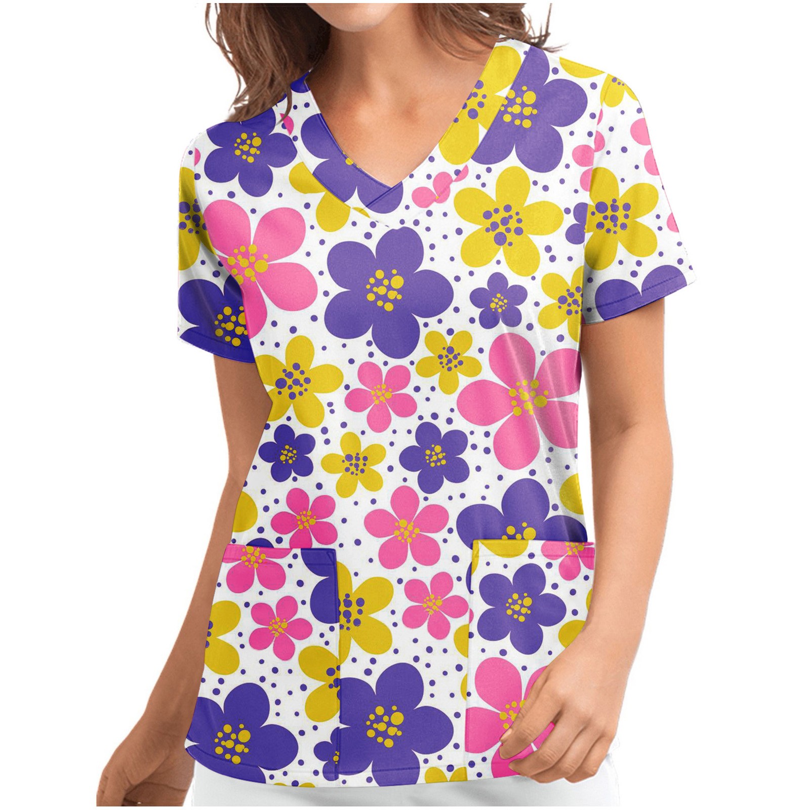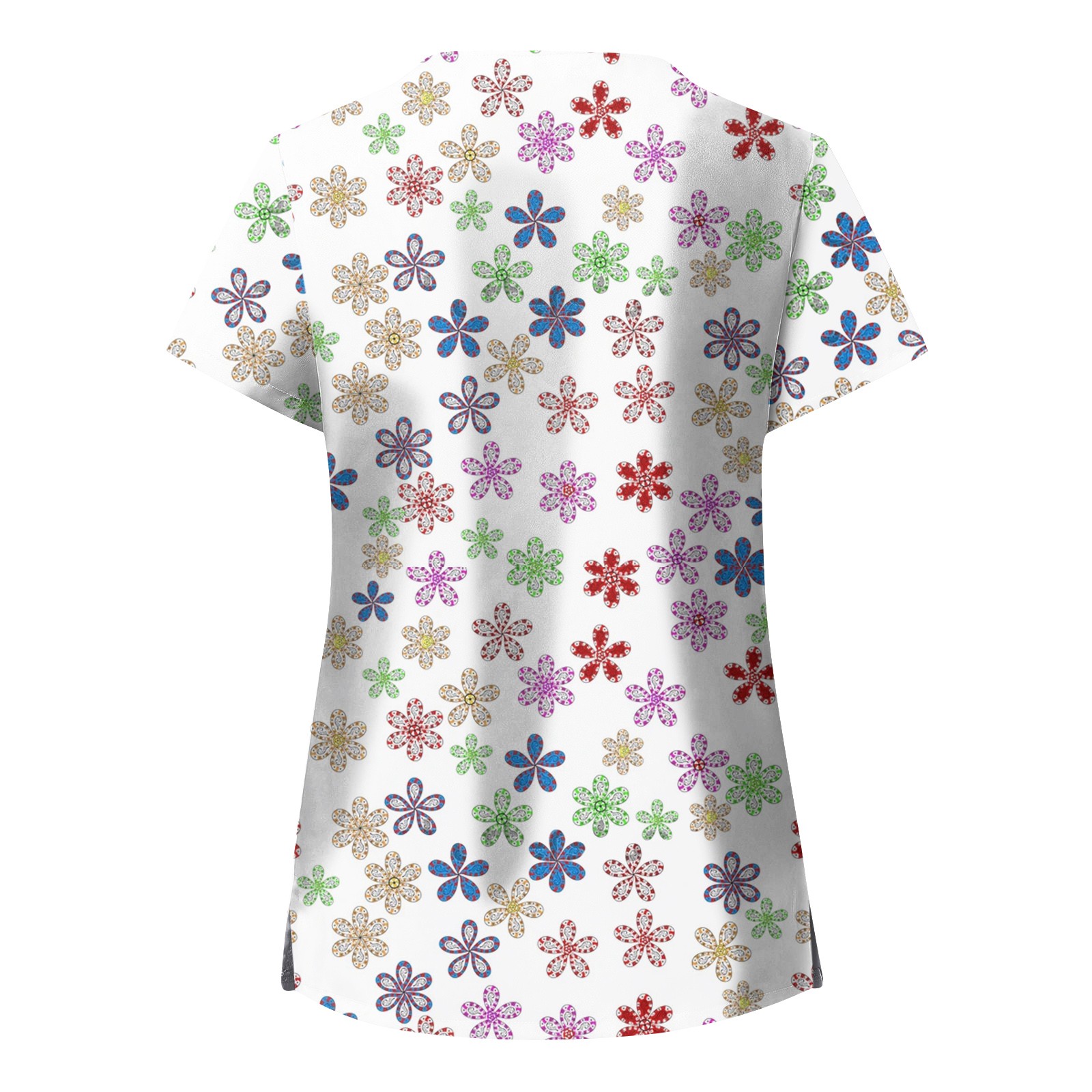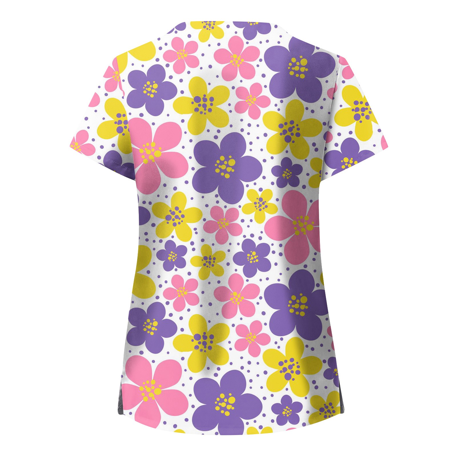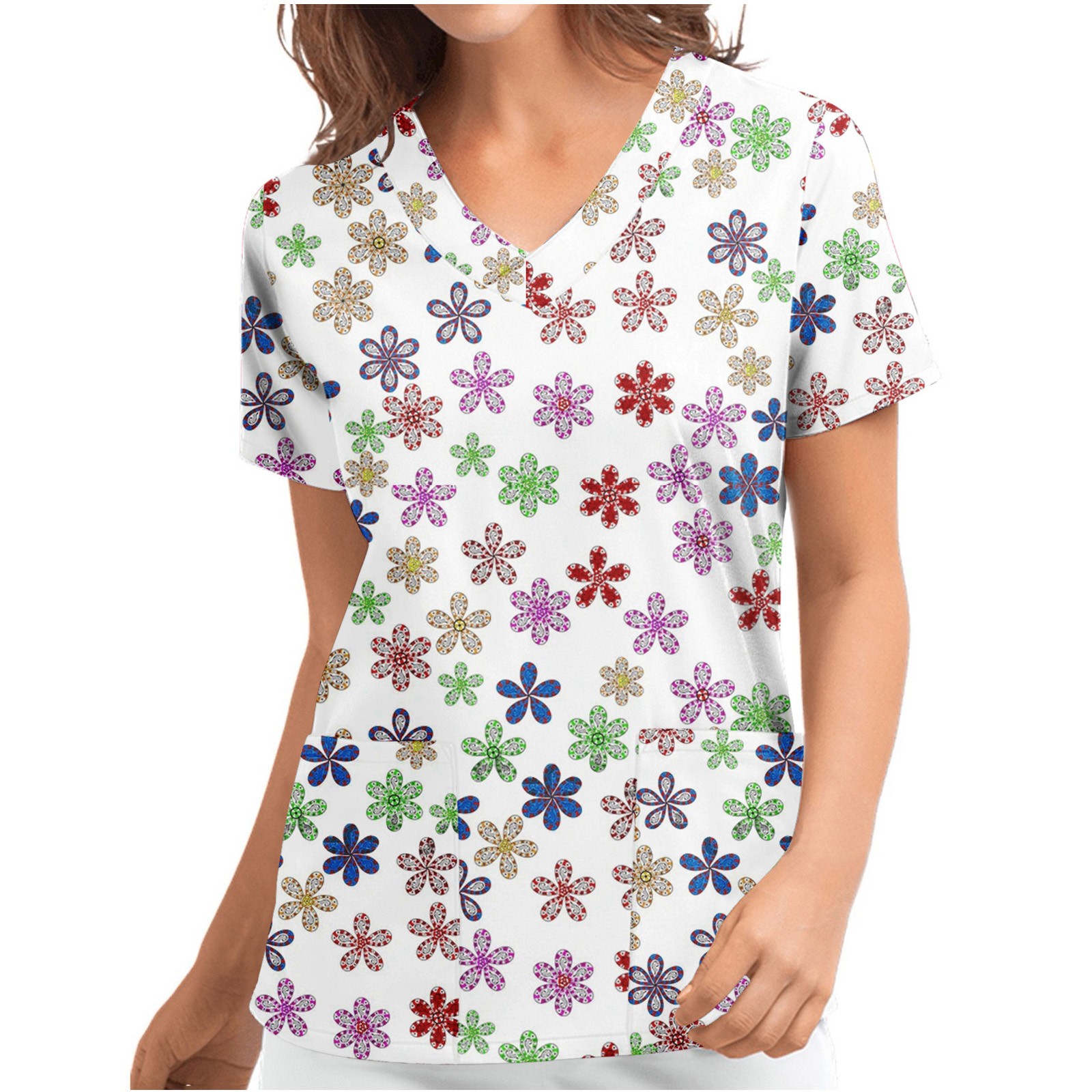 Женская униформа для медсестры размера плюс, Повседневная футболка с коротким рукавом и v-образным вырезом с мультяшным животным и цветочным принтом