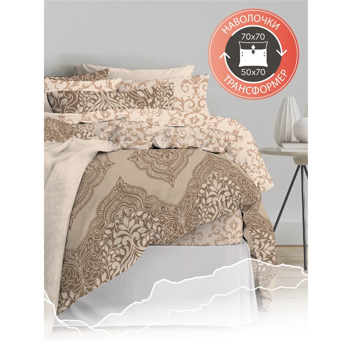 Bed linen latte 1,5 Sp, 2 SP, euro, family with pillowcases transformer, coarse calico, cotton, Vasilisa