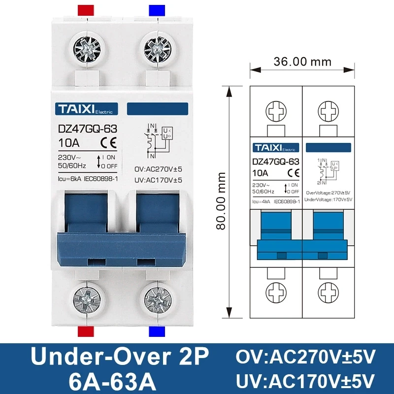 DZ47GQ серии 2P перенапряжения и низкого напряжения с перегрузкой, перегрузки по току
