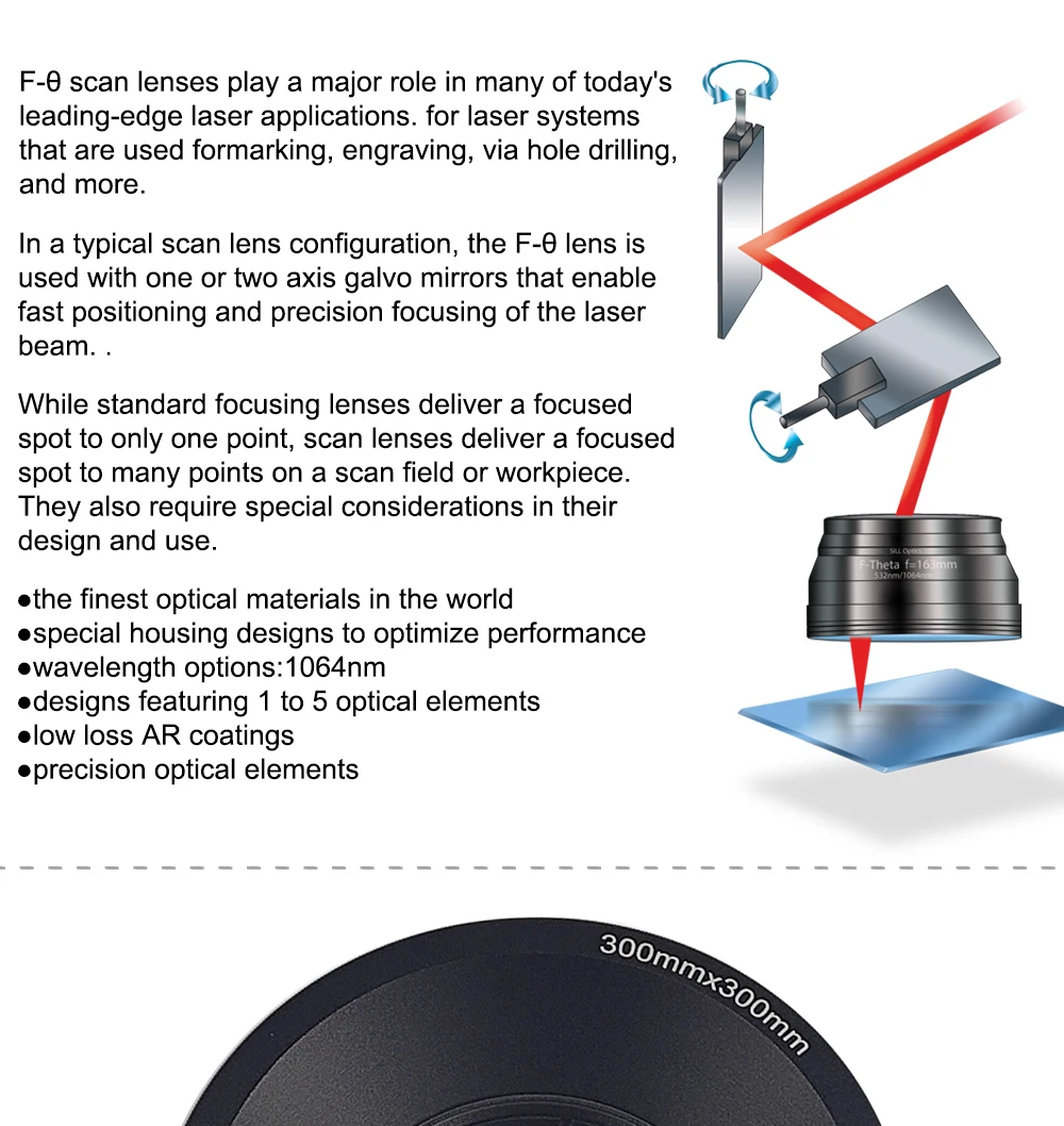 Объектив Hunst CO2 F-theta Scan полевой объектив 10.6um 10600nm 50x50 ~ 400x400 FL75 ~ 650 мм для YAG оптический CO2 лазерная маркировочная машина части.