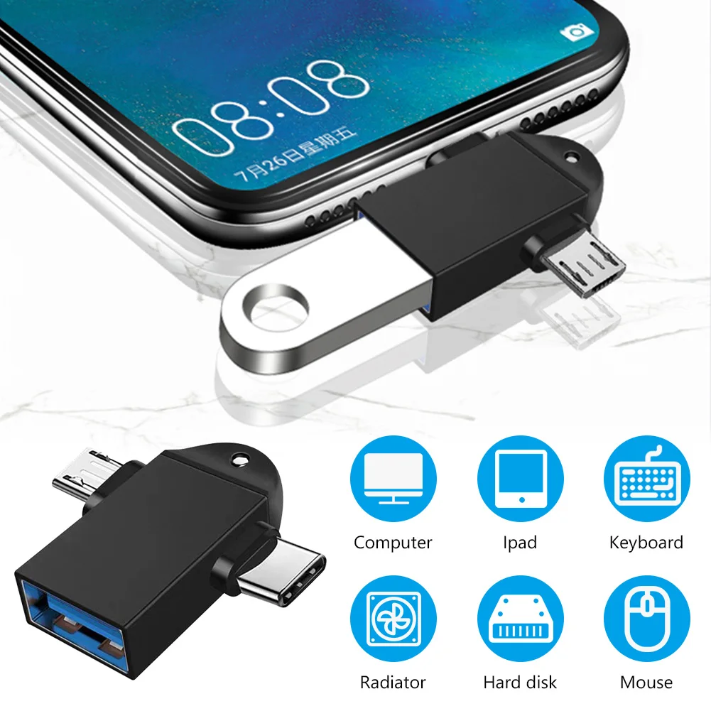 2 в 1 OTG адаптер, USB 3,0 мама к Micro USB папа и USB C папа Разъем алюминиевого сплава на Go конвертер.