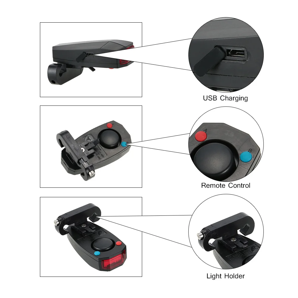Этот многофункциональный задний фонарь интегрирован в 3 в 1 (Сирена + задний фонарь + звонок).